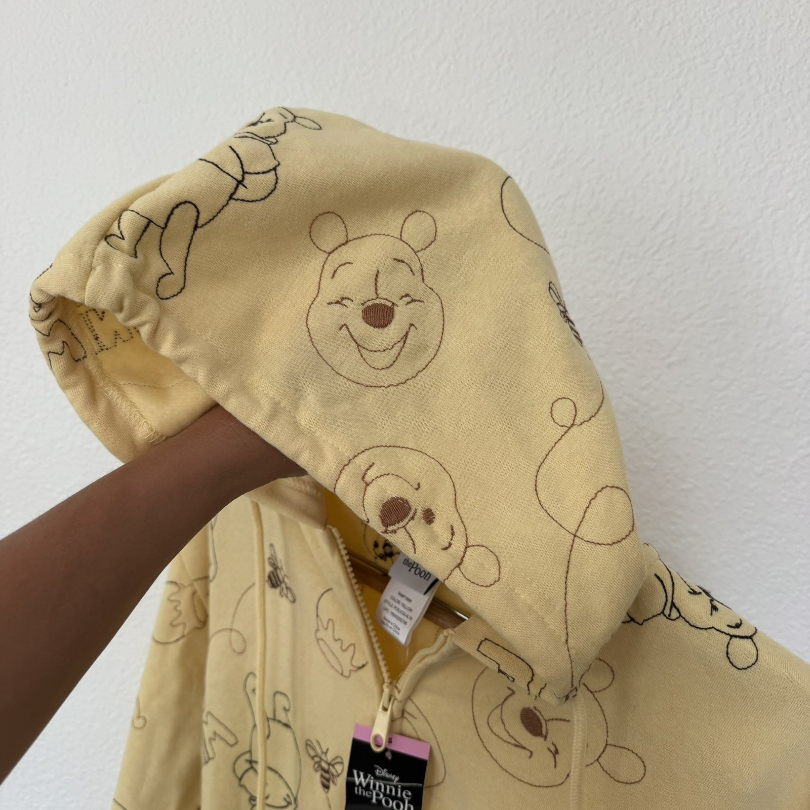 как выглядит Disney Winnie the Pooh Womens Full Zip Embroidered Hoodie Jacket Yellow NWT фото