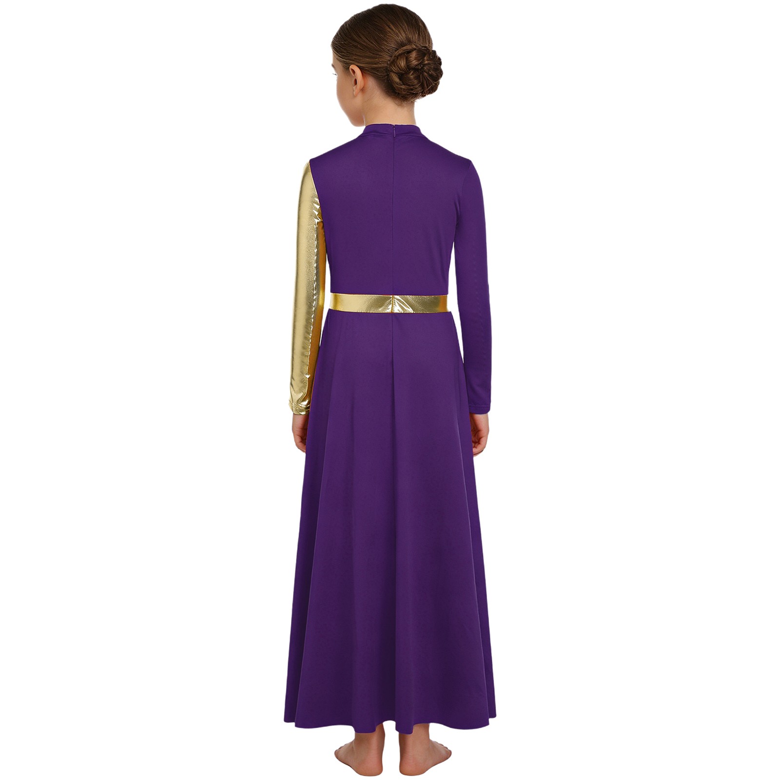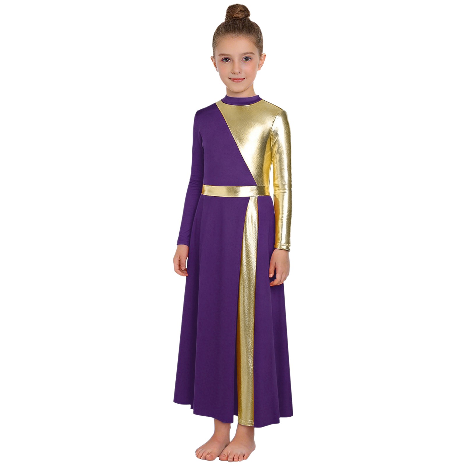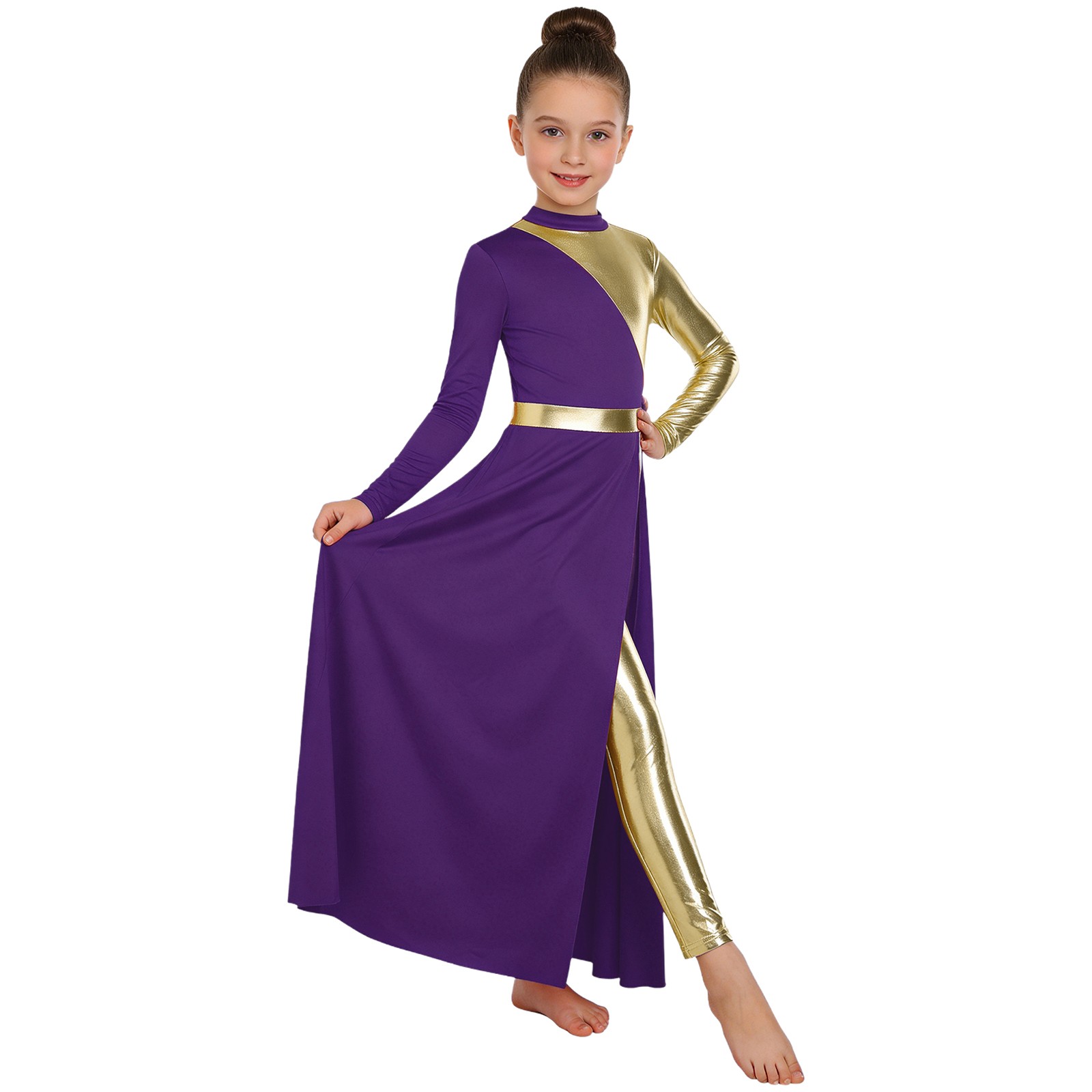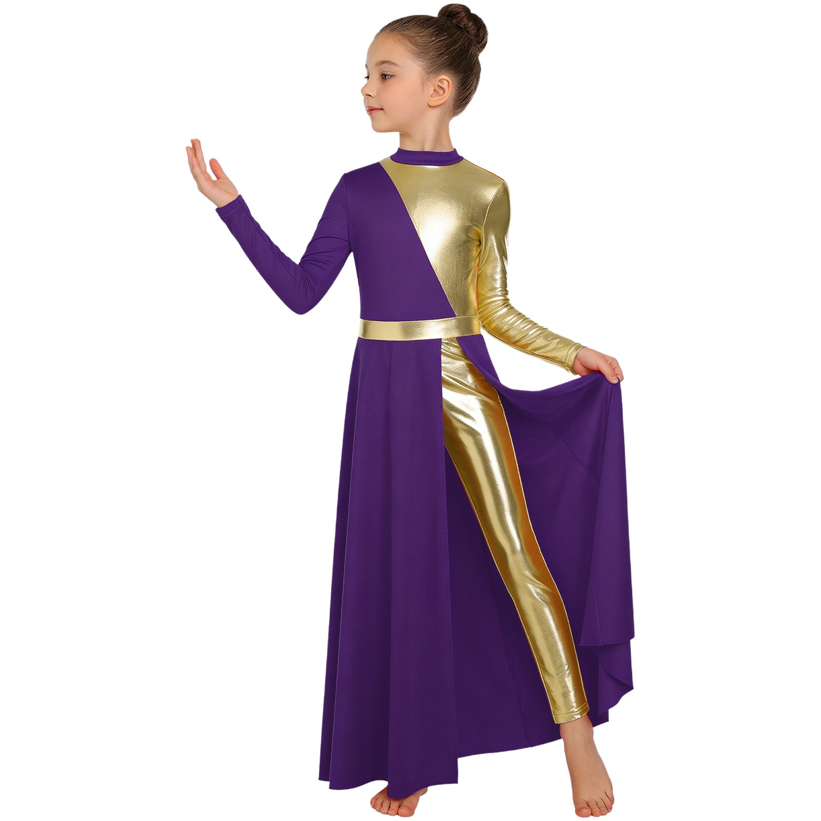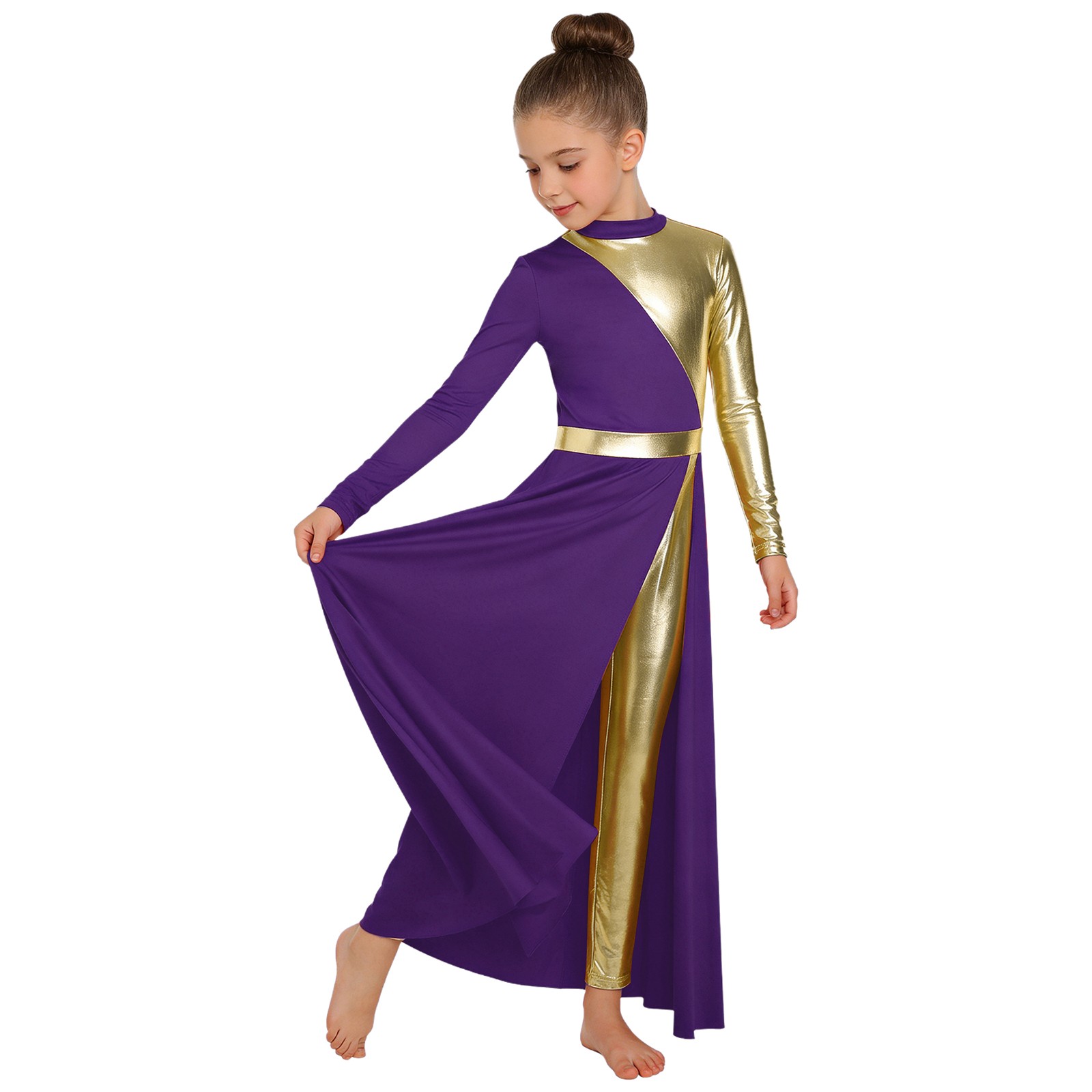 Kids Girls Church Long Sleeve Dancewear Patchwork Dance Dress Lyrical Leotard