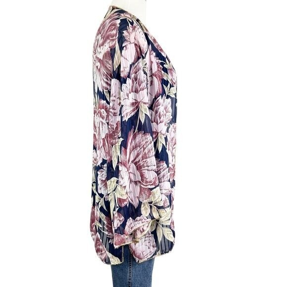 как выглядит Vintage Open Front Floral Cardigan Top Sheer Gold Trim XS/S Kimono фото