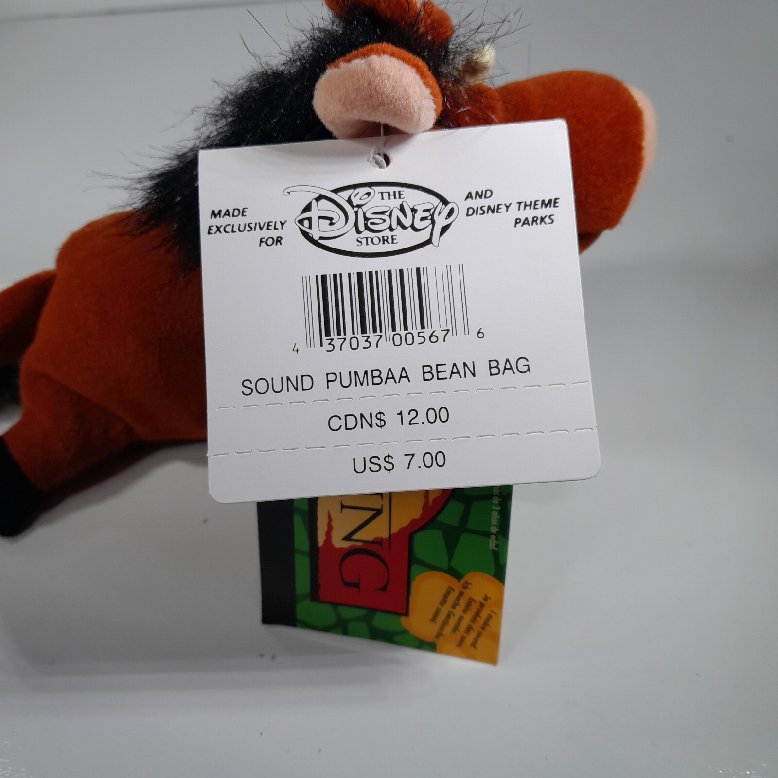 • Vintage Disney Store Pumbaa Lion King Mini Bean Bag Plush - No Sound NWT