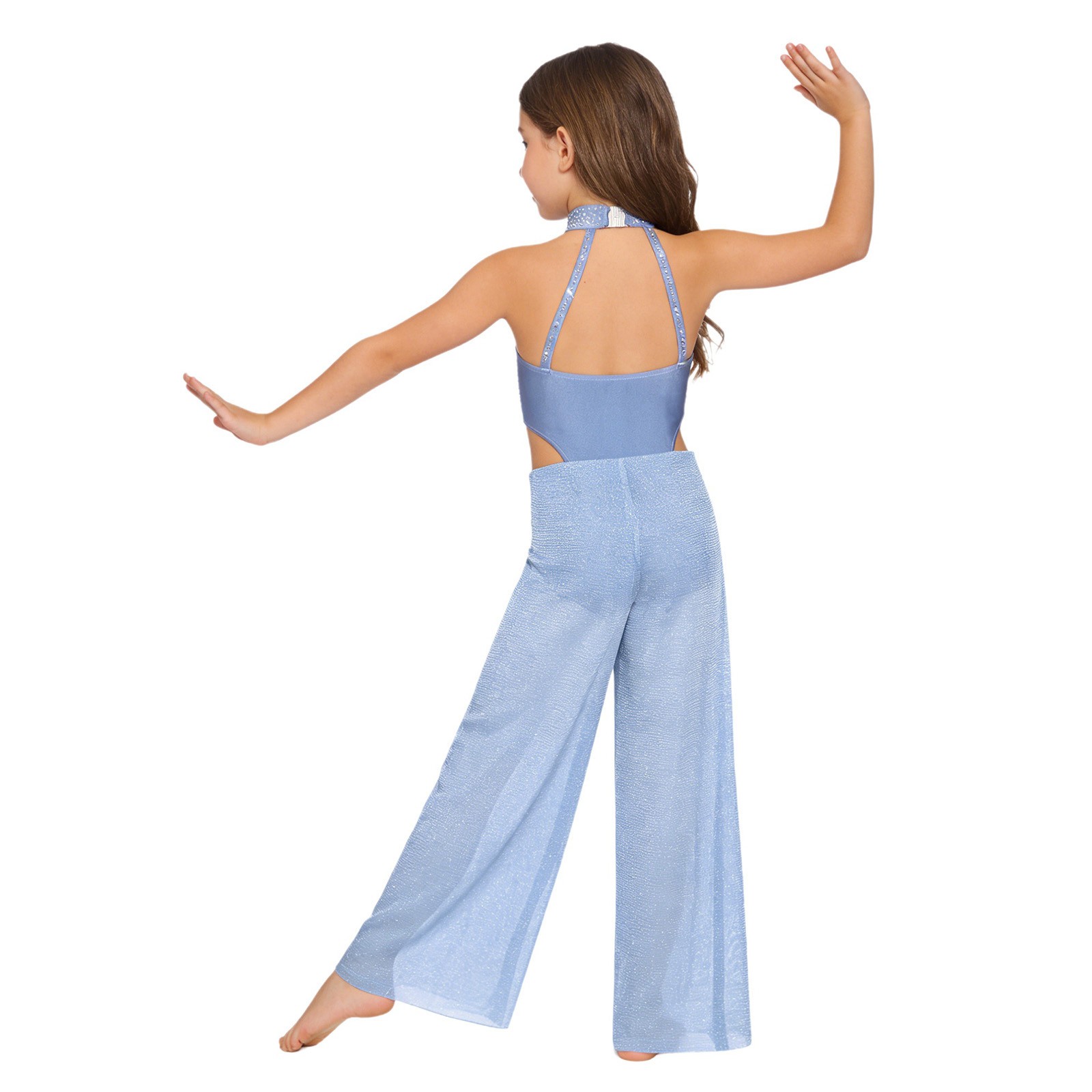 как выглядит Kids Girls Dancewear Performance Jumpsuit Unitard Bodysuit Glitter Dance Shiny фото