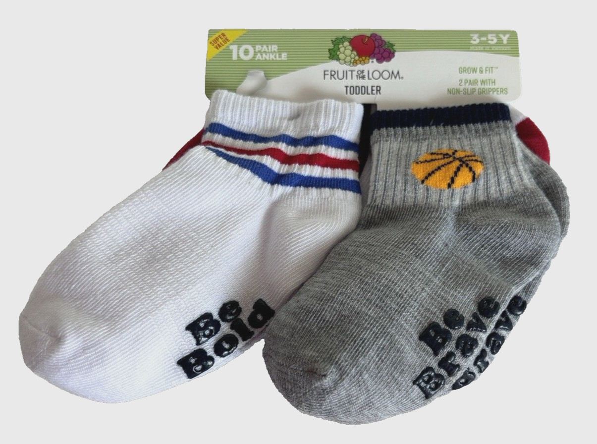 Fruit of the Loom Boys Ankle Socks 10 Pack Size 3-5 Y Shoe Size 7.5-11 NEW