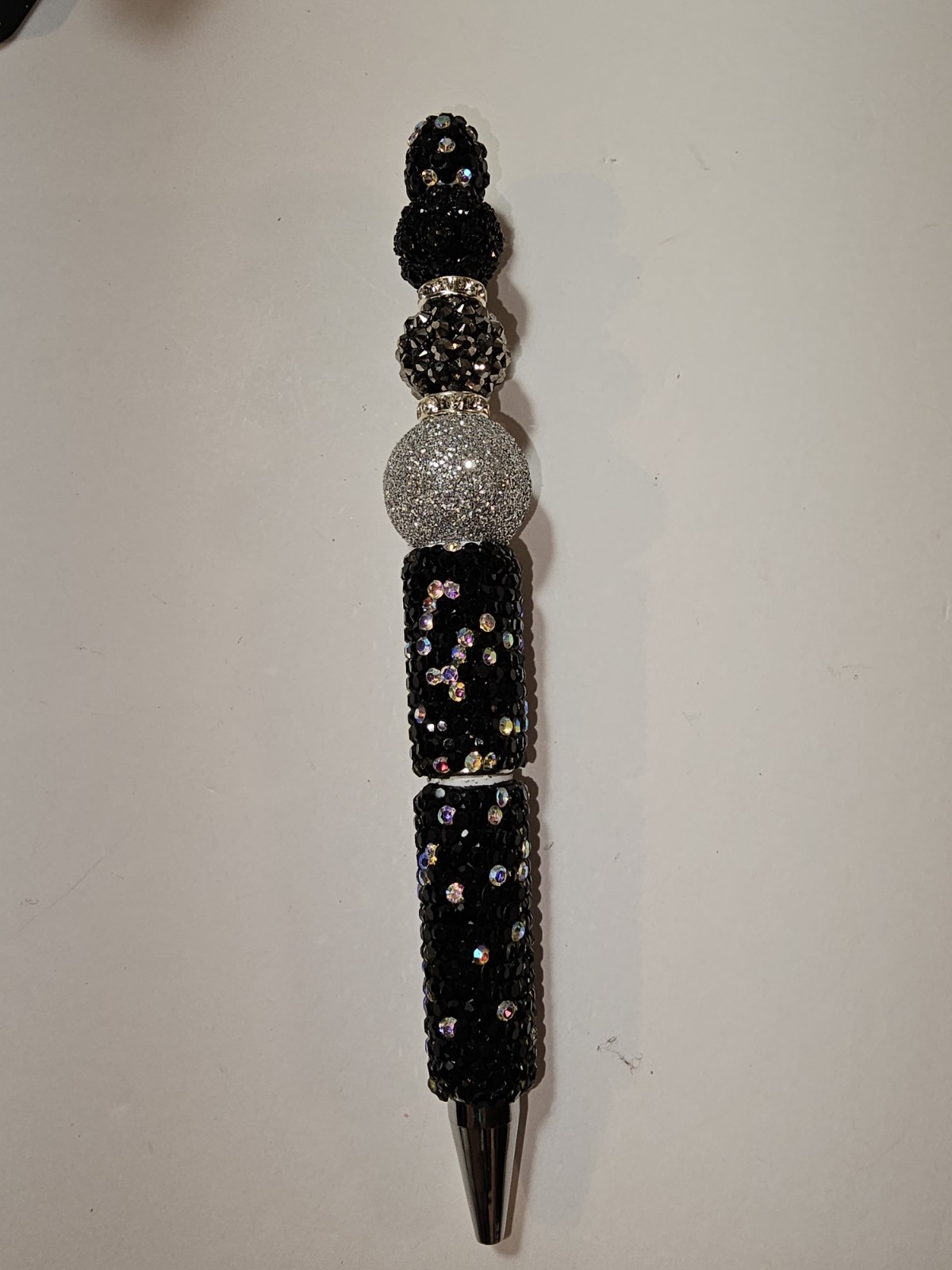 • Handcrafted Black Rhinestone Acrylic Beaded Pen Sparkly Bling