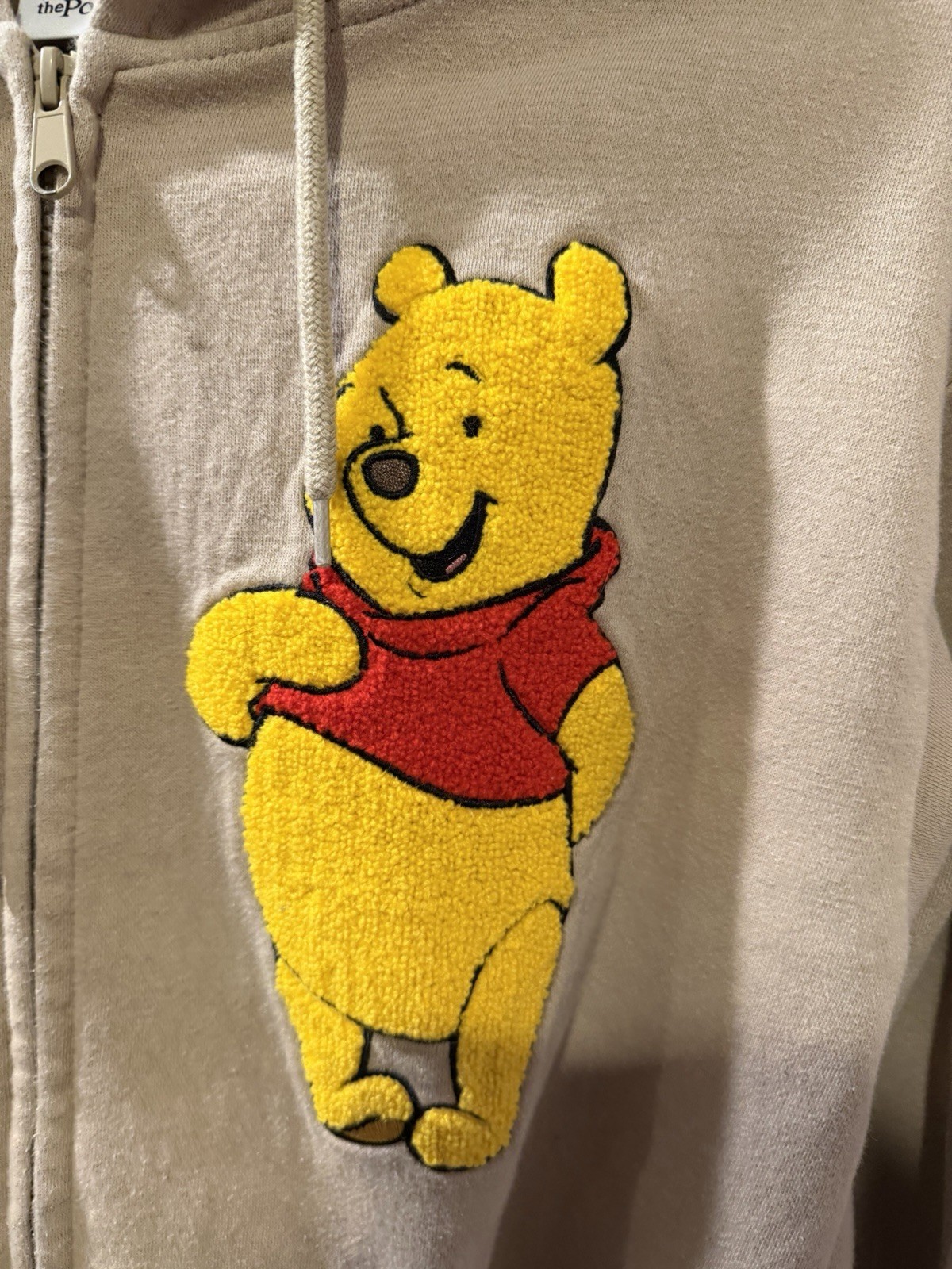 как выглядит Disney Winnie the Pooh Womens Embroidered MEDIUM ZIP Hoodie Sweatshirt Sand NEW фото