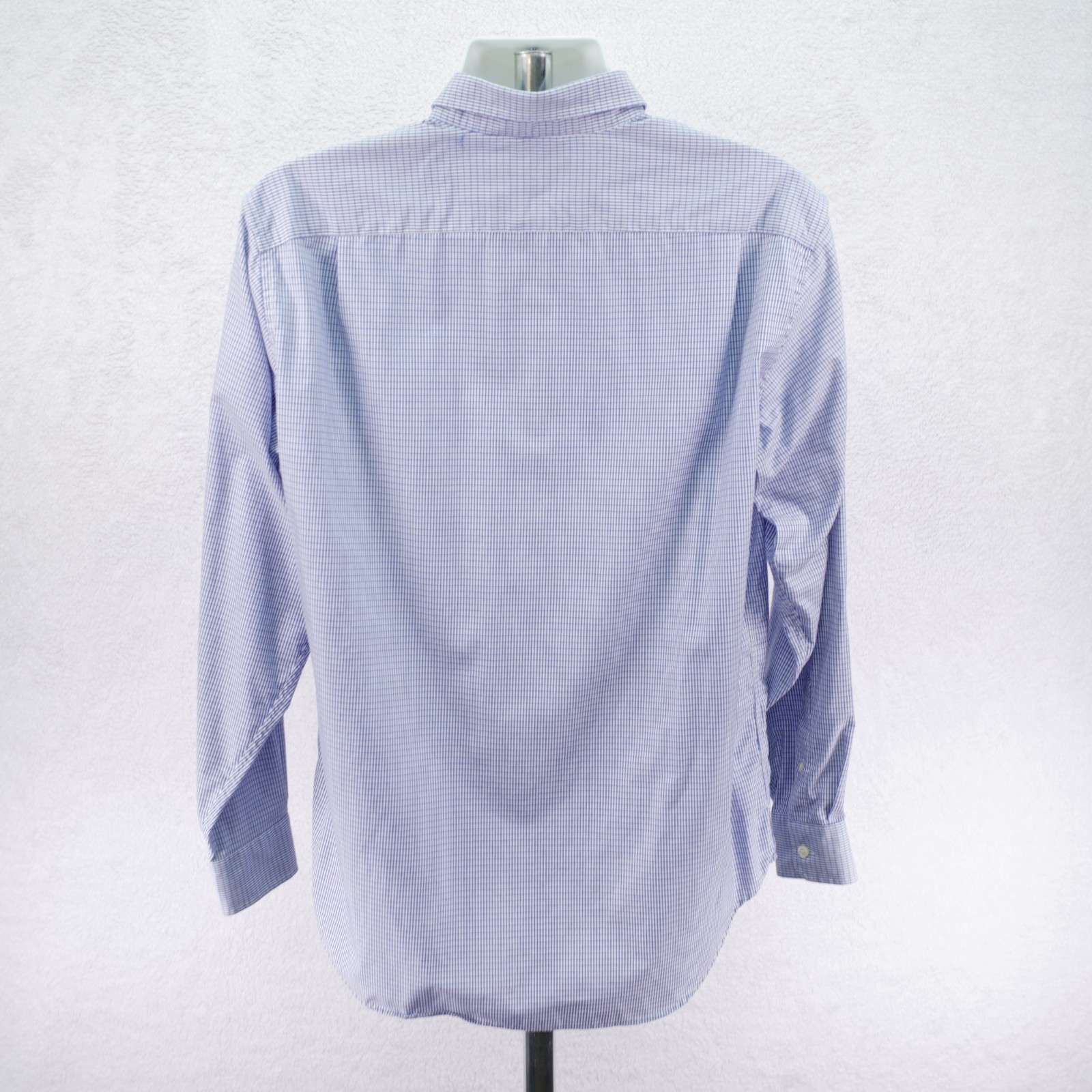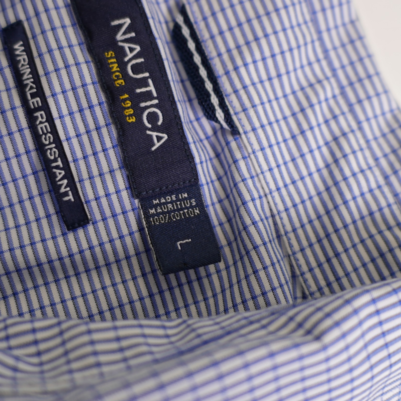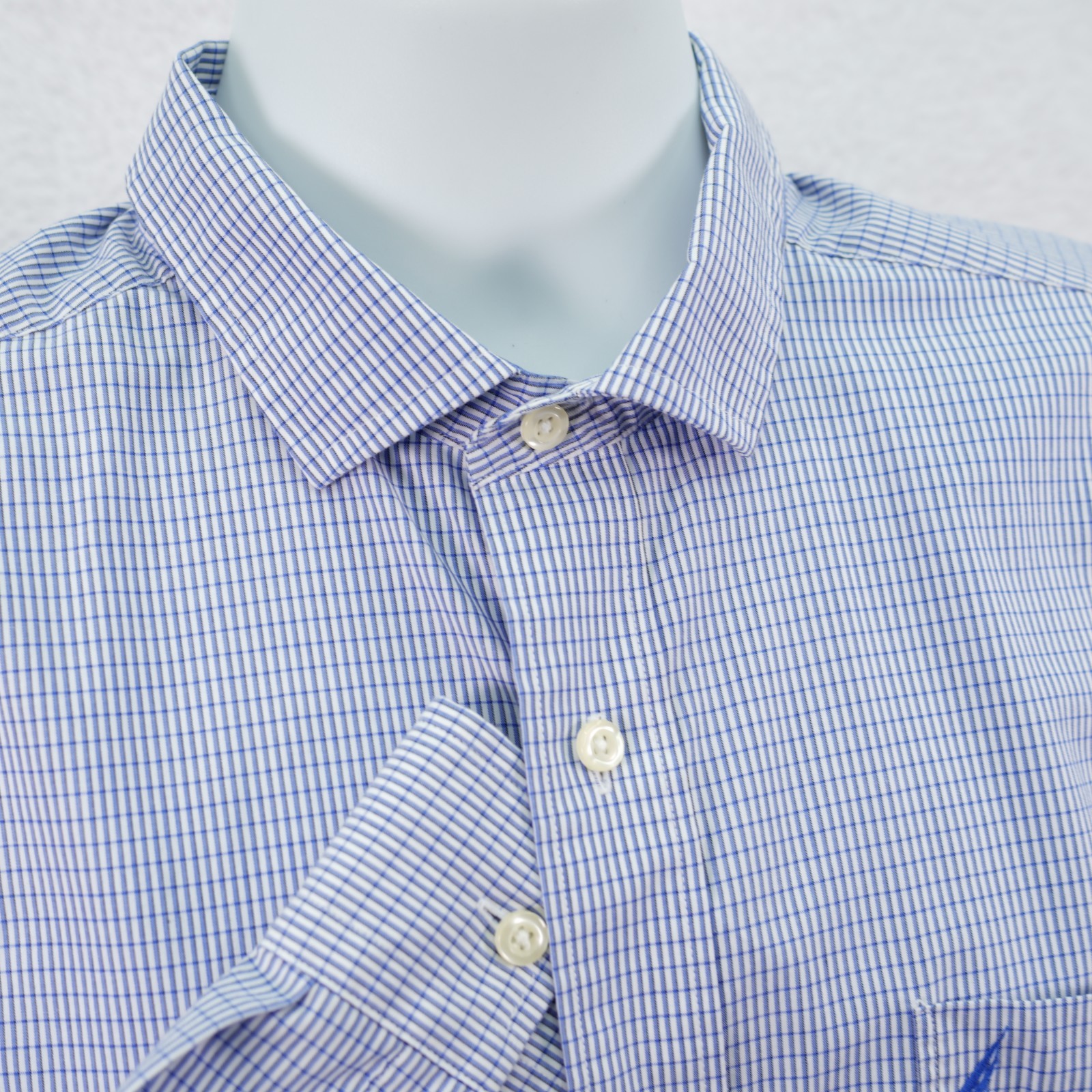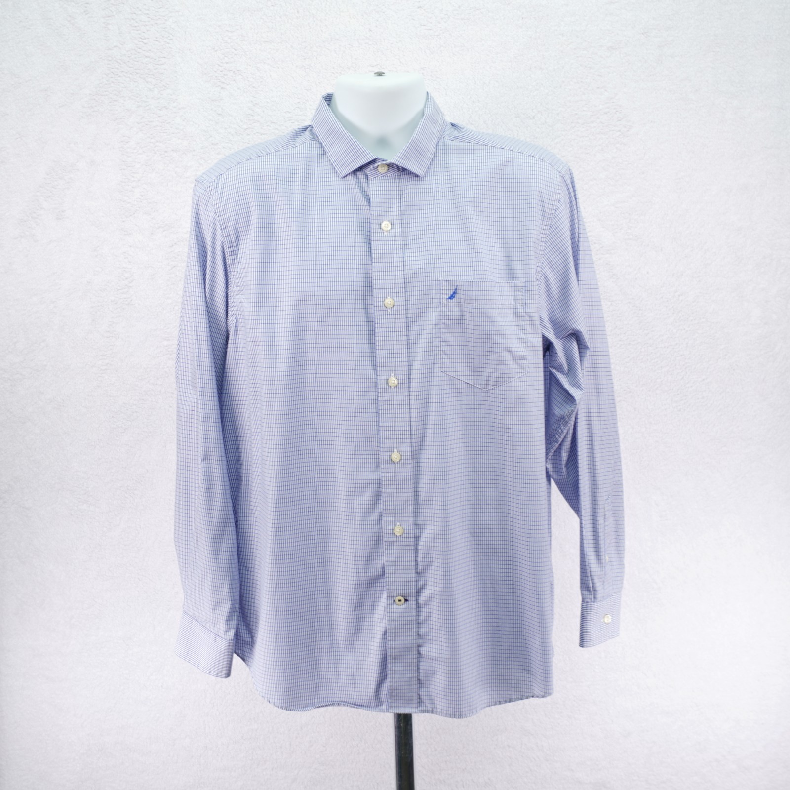 как выглядит Nautica Mens Wrinkle Resistant Blue Check Collared Dress Shirt Large Cotton фото
