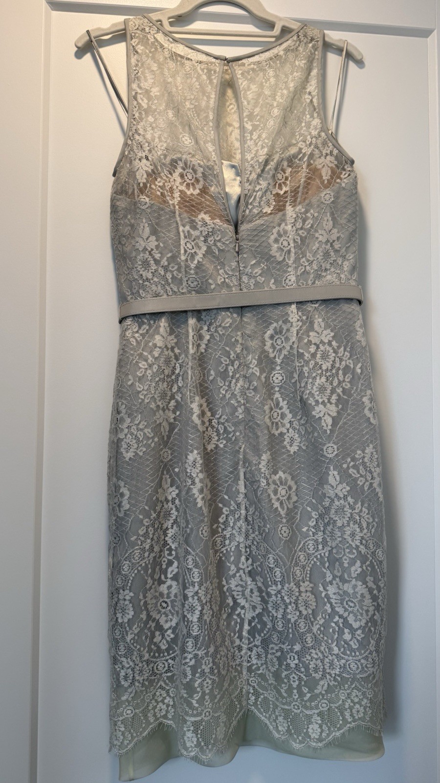 как выглядит Theia Lace Cocktail Dress Size 4 Belted Silver Wedding Guest Mother of Bride фото