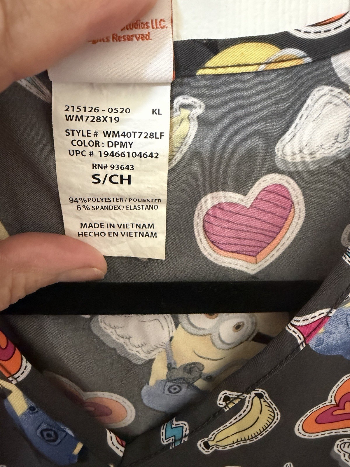 Despicable Me Minions Small V Neck Scrub Top With 2 Pockets.