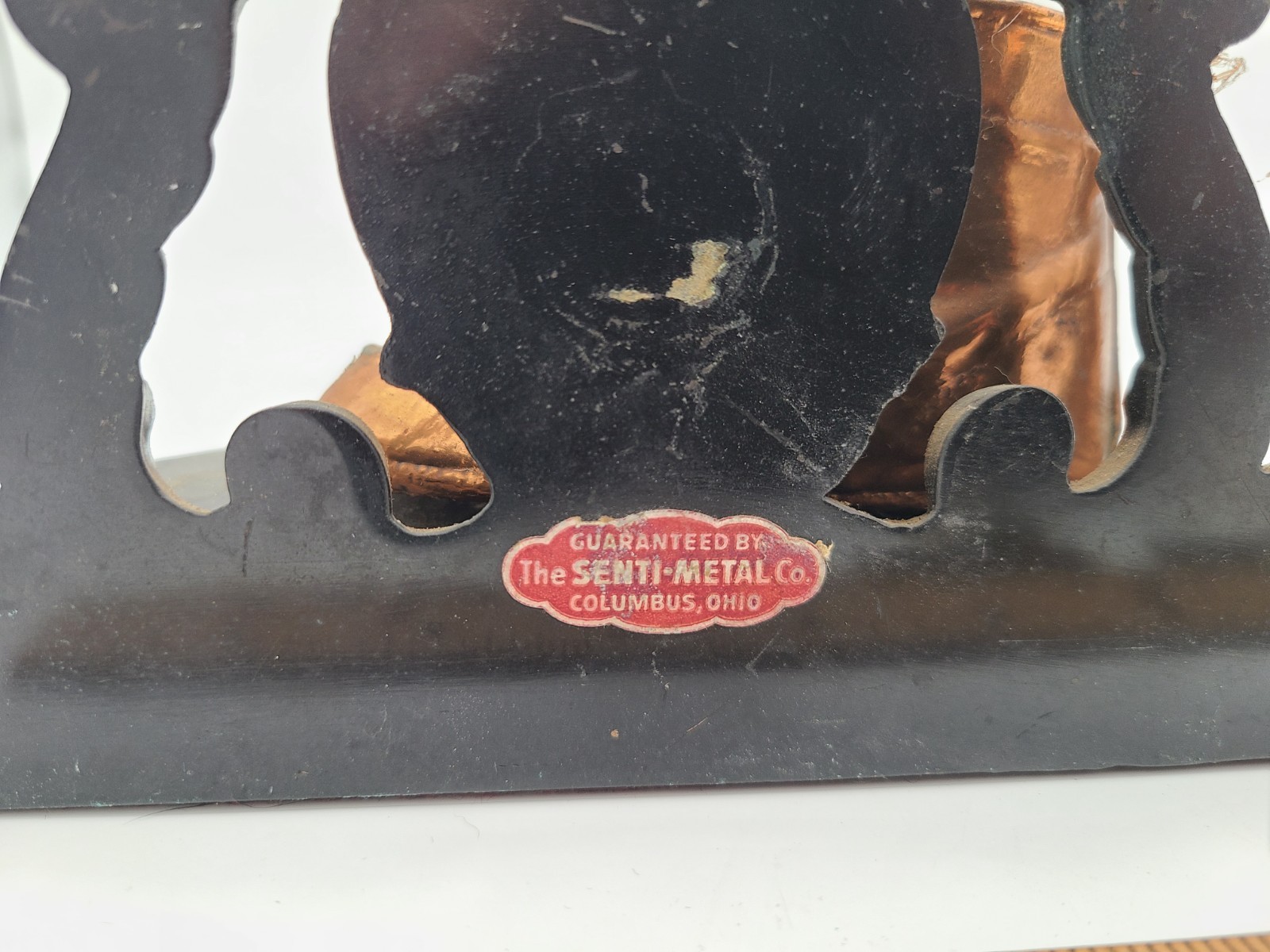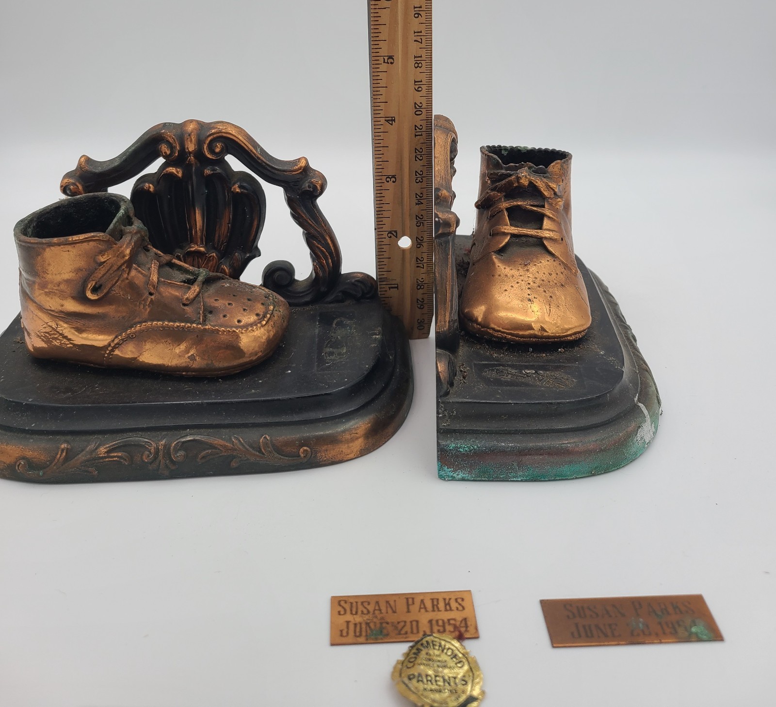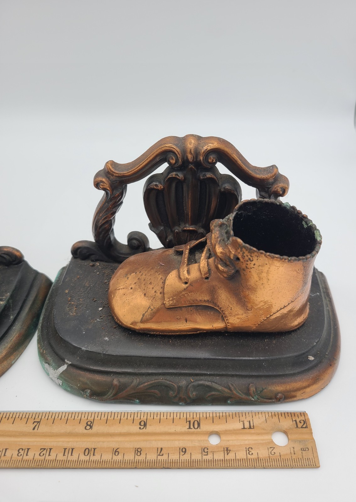 • Vintage Copper Colored Bronzed Pair Baby Shoes Bookends Display set of 2