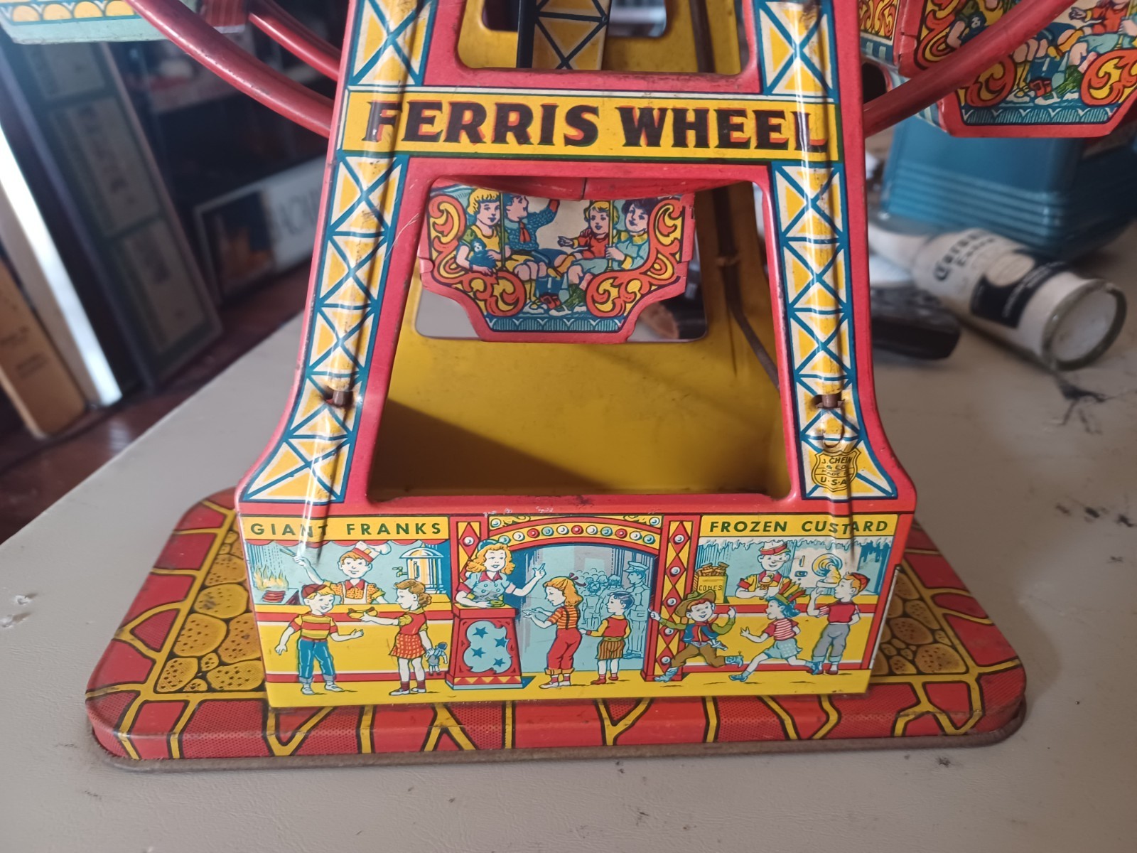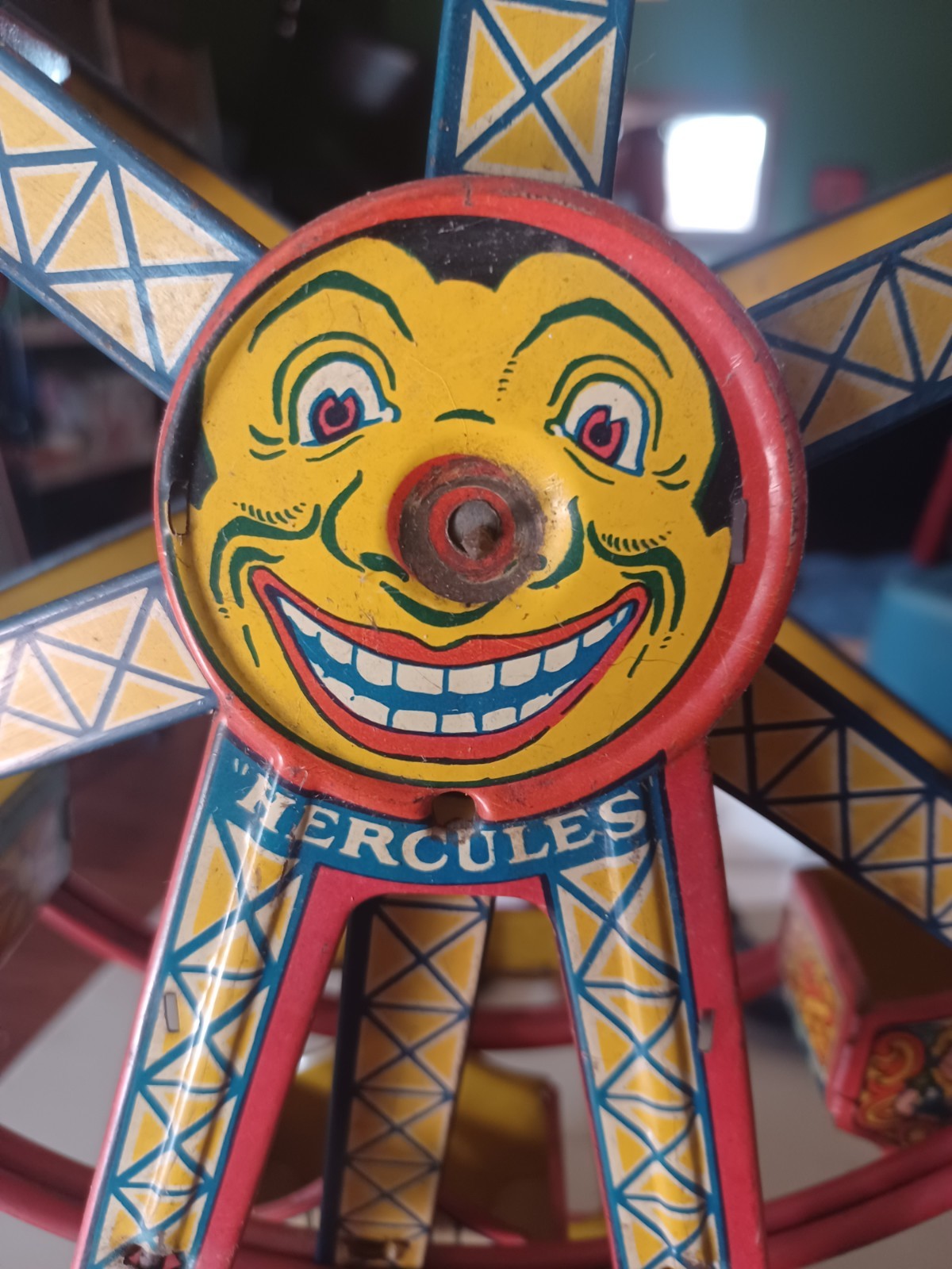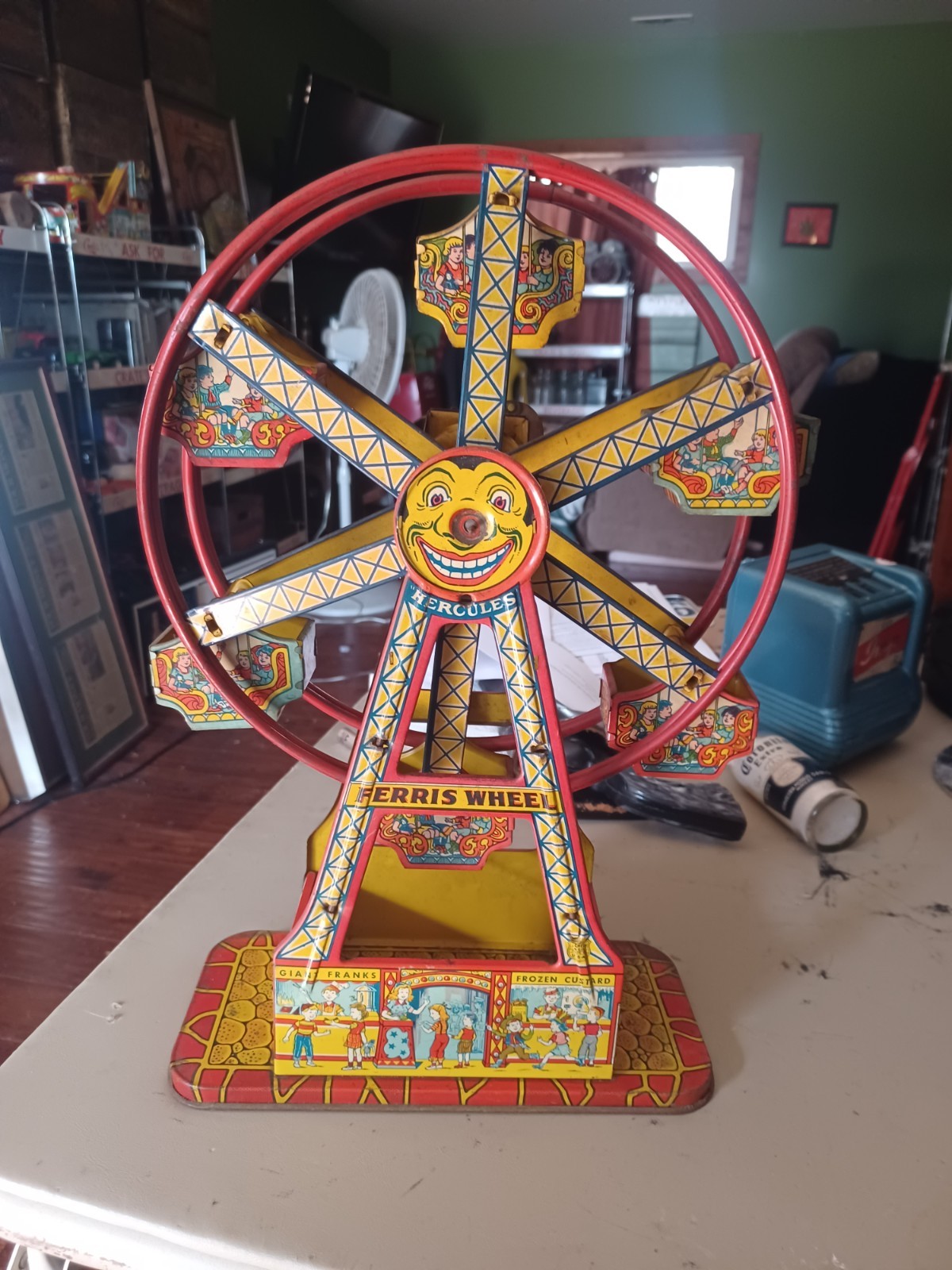 как выглядит Rare Early 1930 s J. Chein Tin Litho Windup Hercules Mechanical Ferris Wheel фото