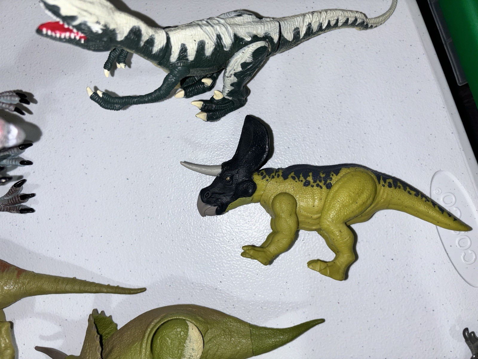 Animal Species: Metriacanthosaurus, Pachycephalosaurus, Triceratops, Velociraptor, Dilophosaurus, indoraptor, masiakasaurus, sarcosuchus