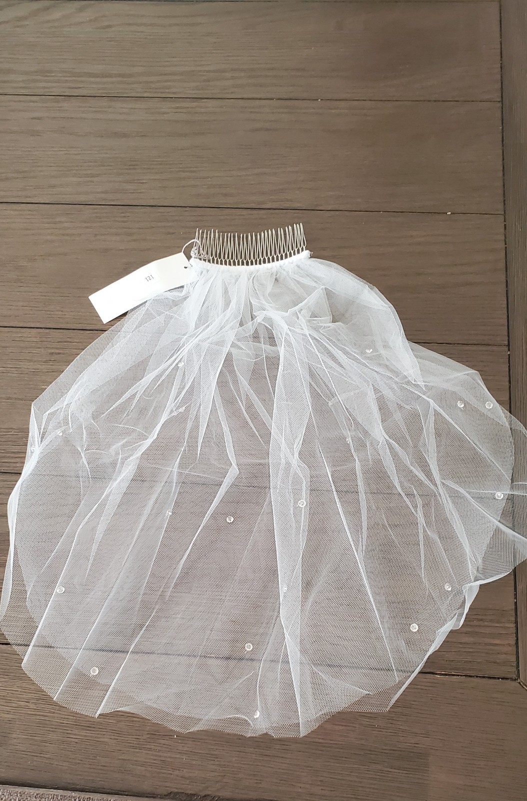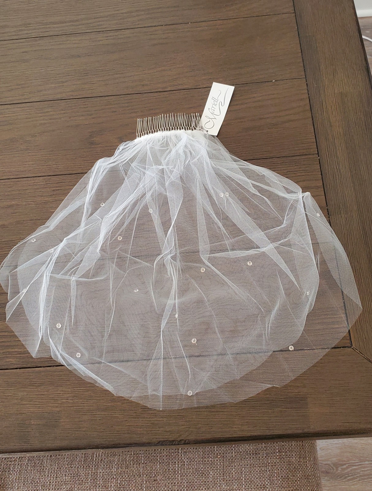 как выглядит 16" Two-tier Wedding Veil Light Ivory with Austrian Crystals Comb NEW in Bag фото