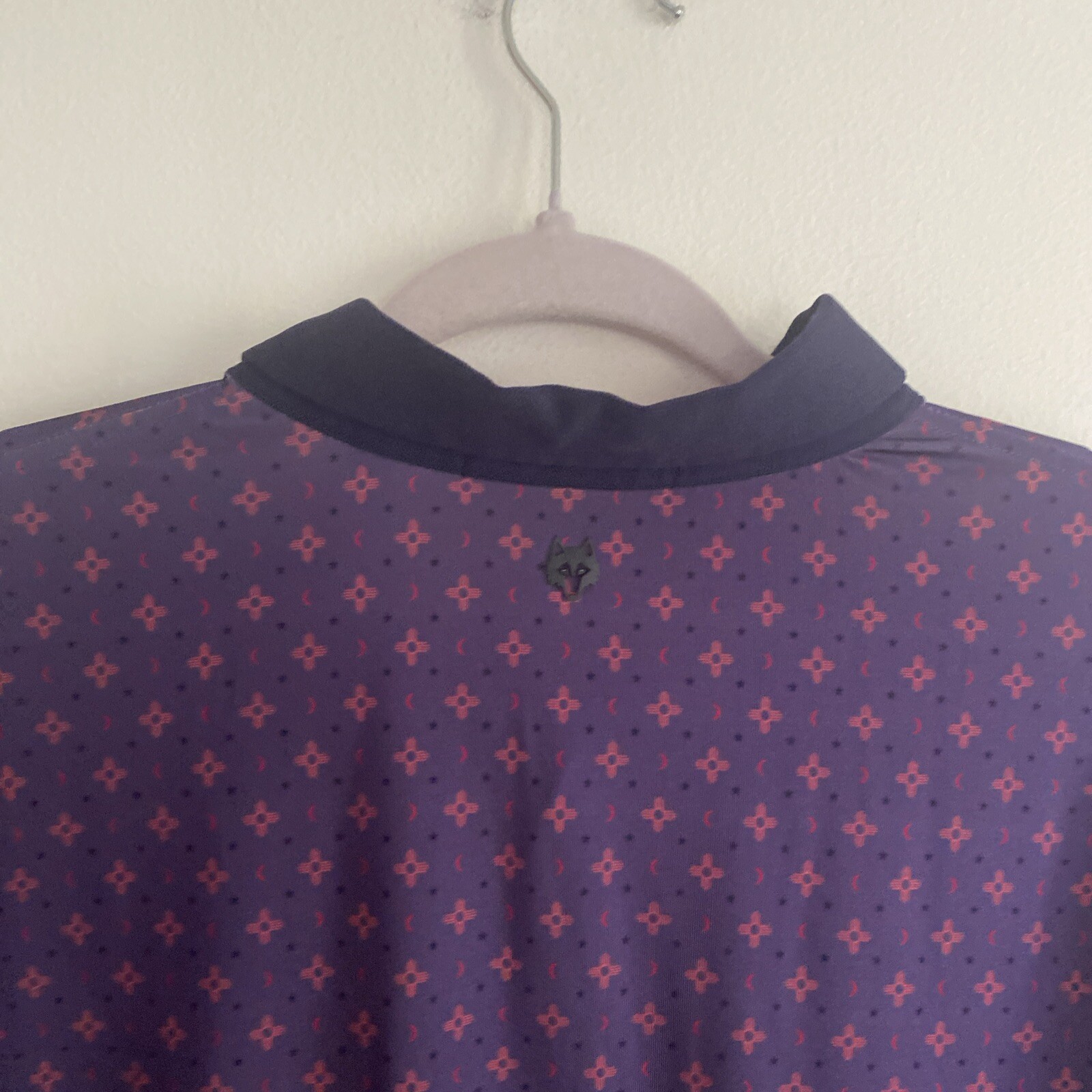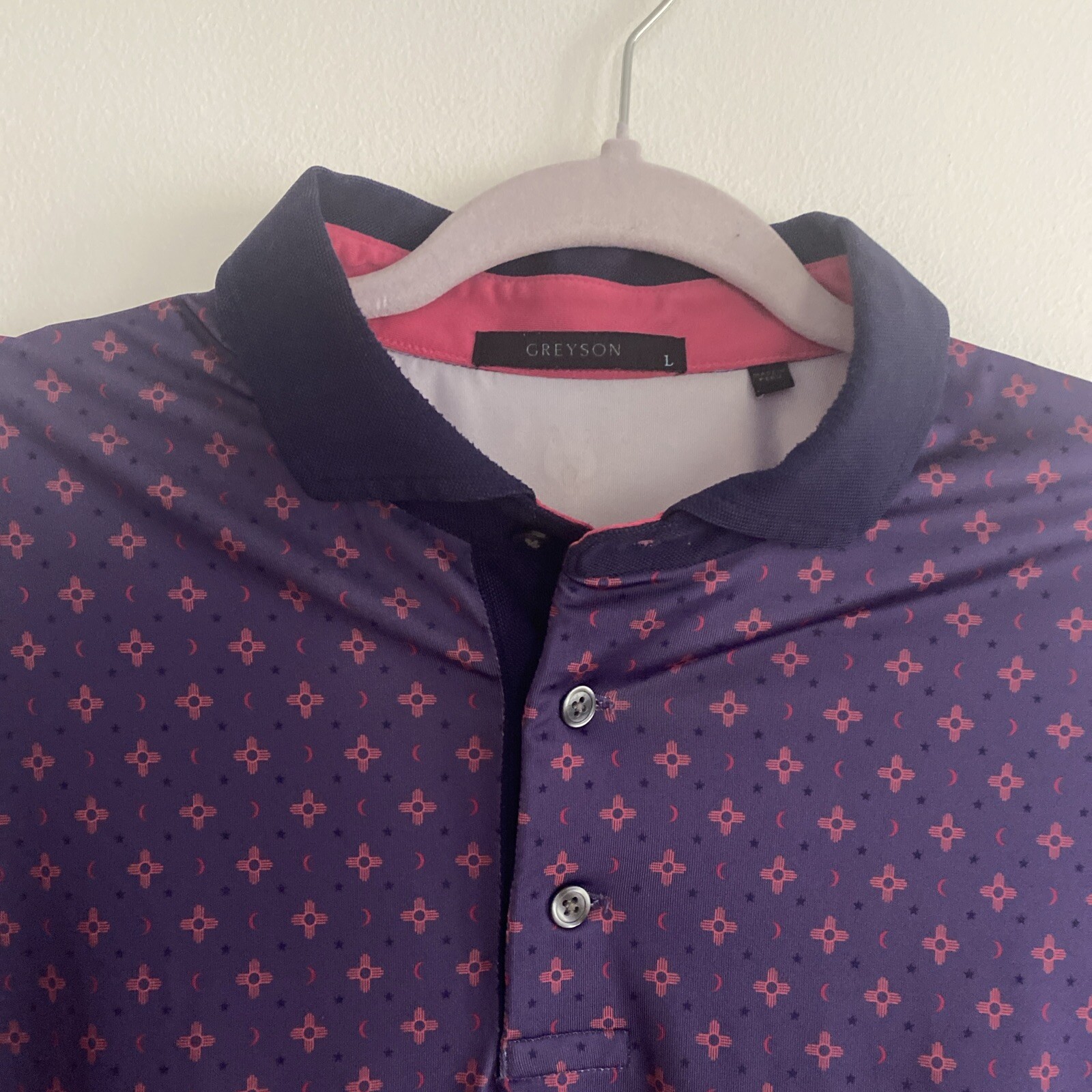 как выглядит Greyson Geometric Polo Shirt Mens Large Purple Performance Golf EUC фото
