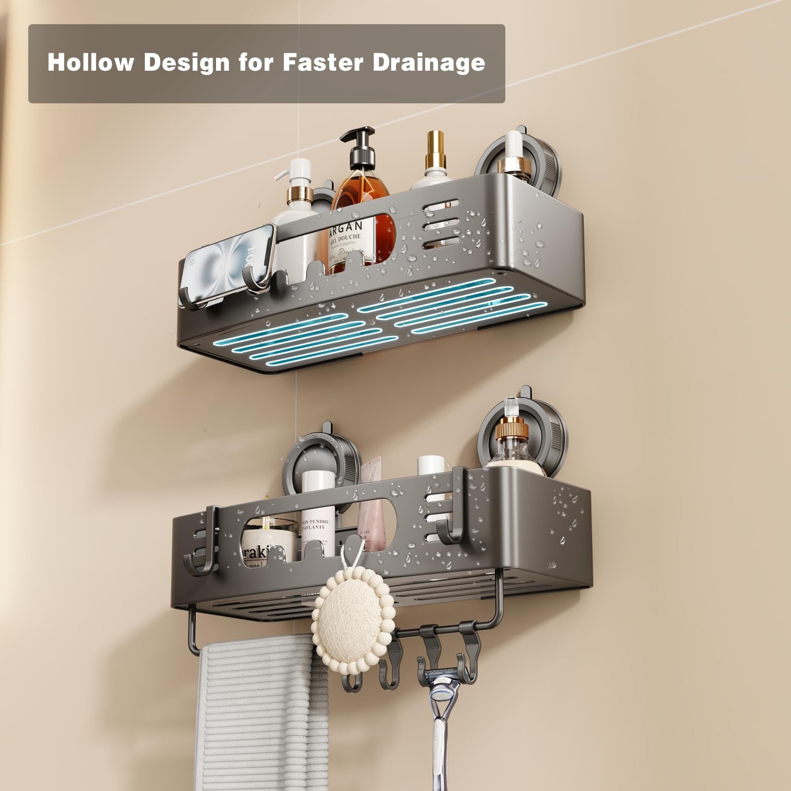 Shower Caddy Suction Cup, Shower Shelves for Inside Shower No Drilling, Alumi...