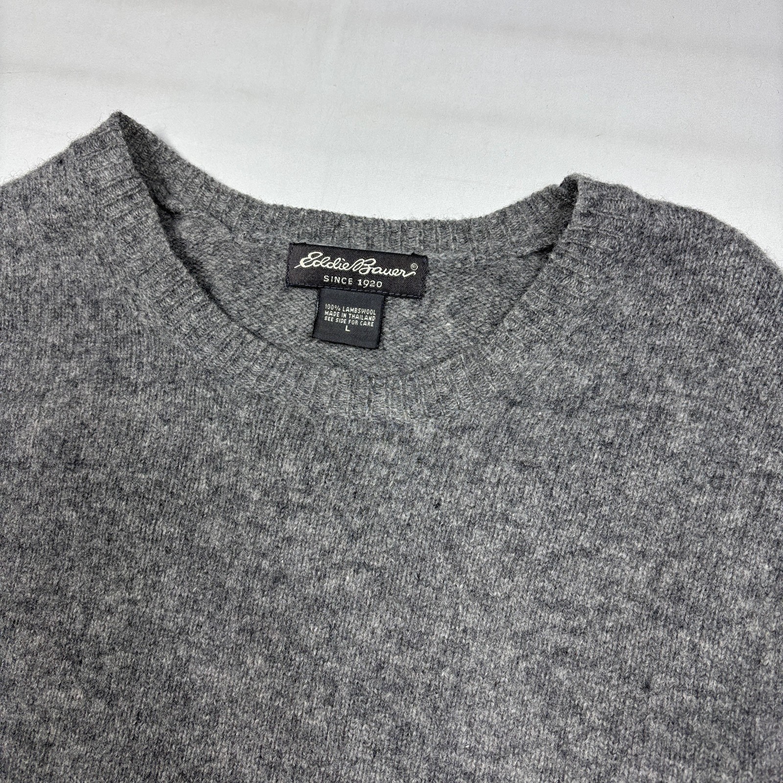 VTG Eddie Bauer Men's Large Gray 100 Lambswool Crewneck Pullover Sweater Y2K