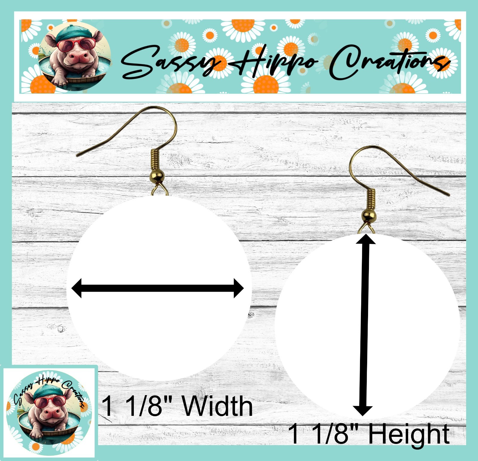 Earrings Round Gold Hook Backs Pink Gnome Spring Flowers MDF Sublimated