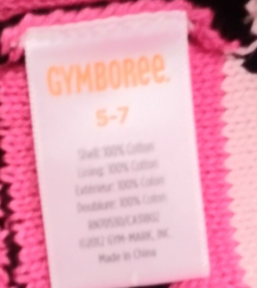 GUC Gymboree rare size 5-7 girls black pink white polka dot knit cap hat winter