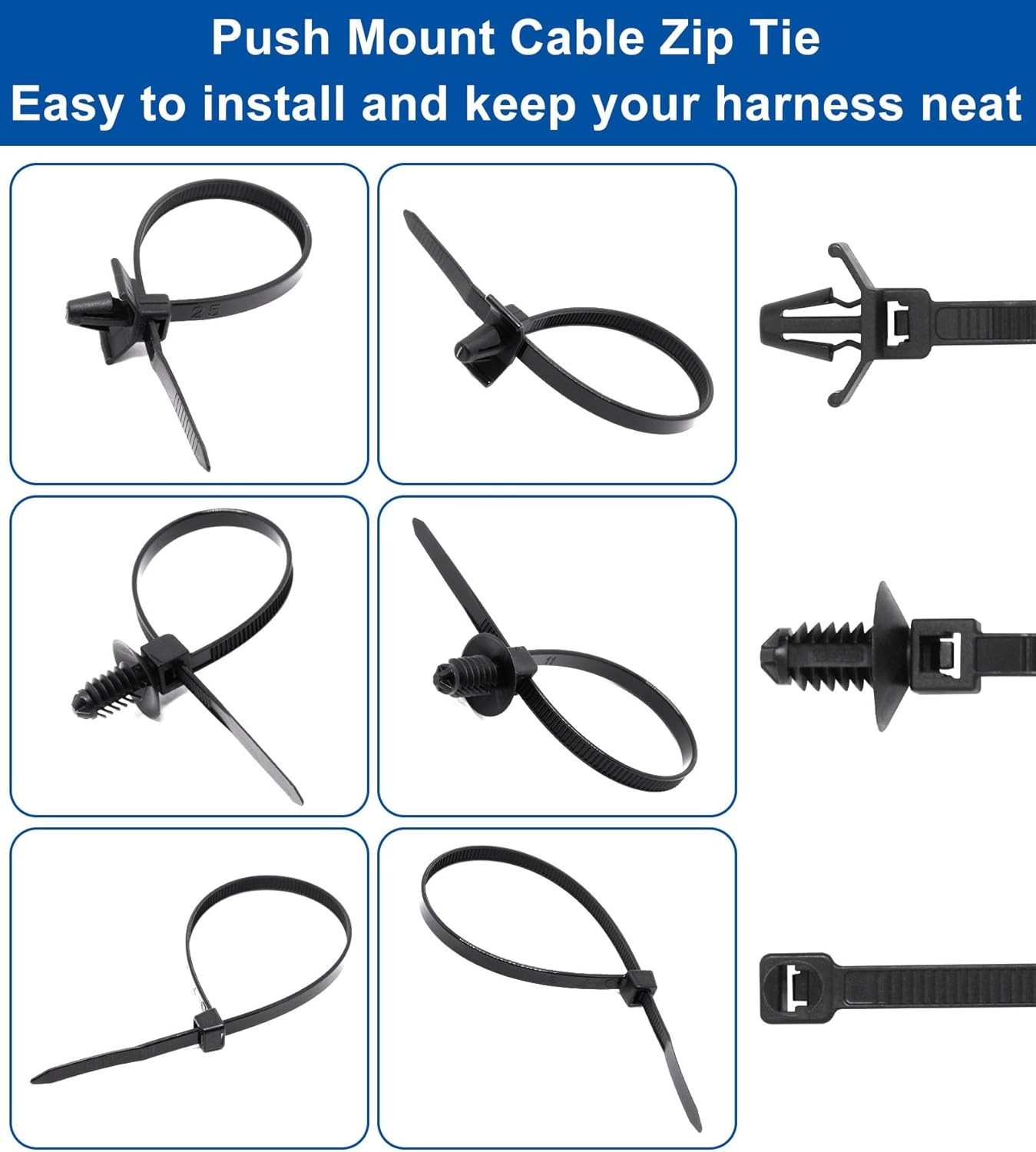 • 45Pcs Push Mount Cable Zip Tie with Car Wire Loom Routing Clips Assortment, Univ