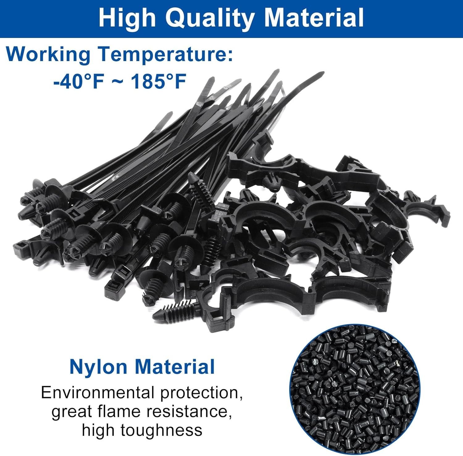 как выглядит 45Pcs Push Mount Cable Zip Tie with Car Wire Loom Routing Clips Assortment, Univ фото