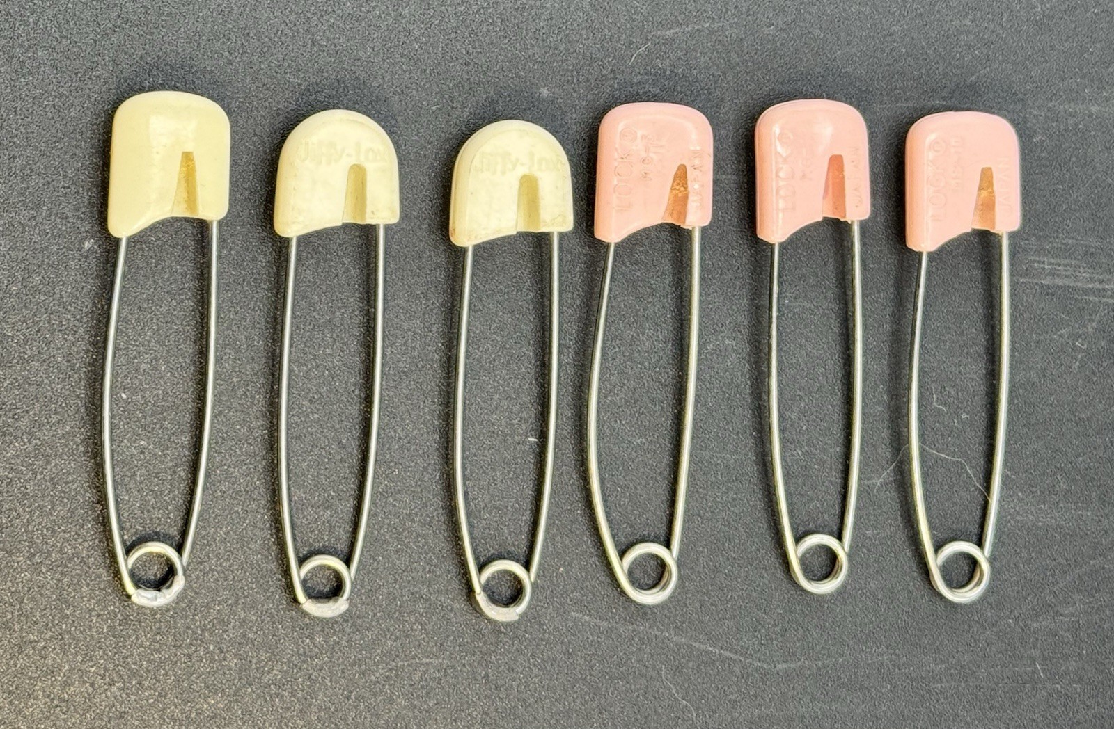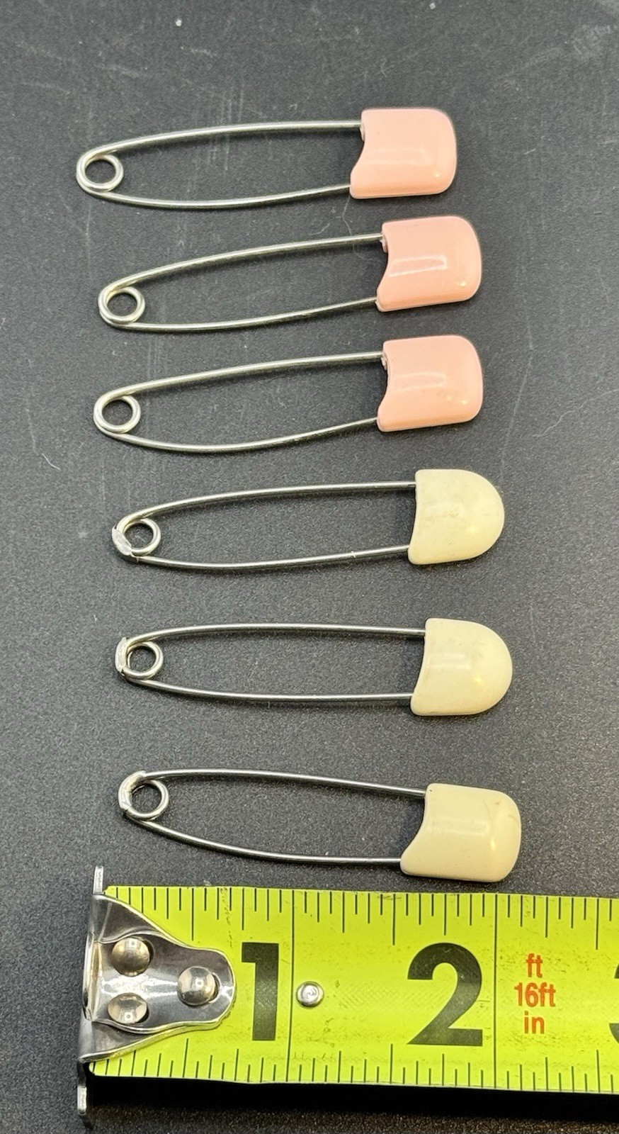 Vintage Baby Diaper Safety Pins Set 6 Pastel Pink Cream Metal Caps Retro Japan
