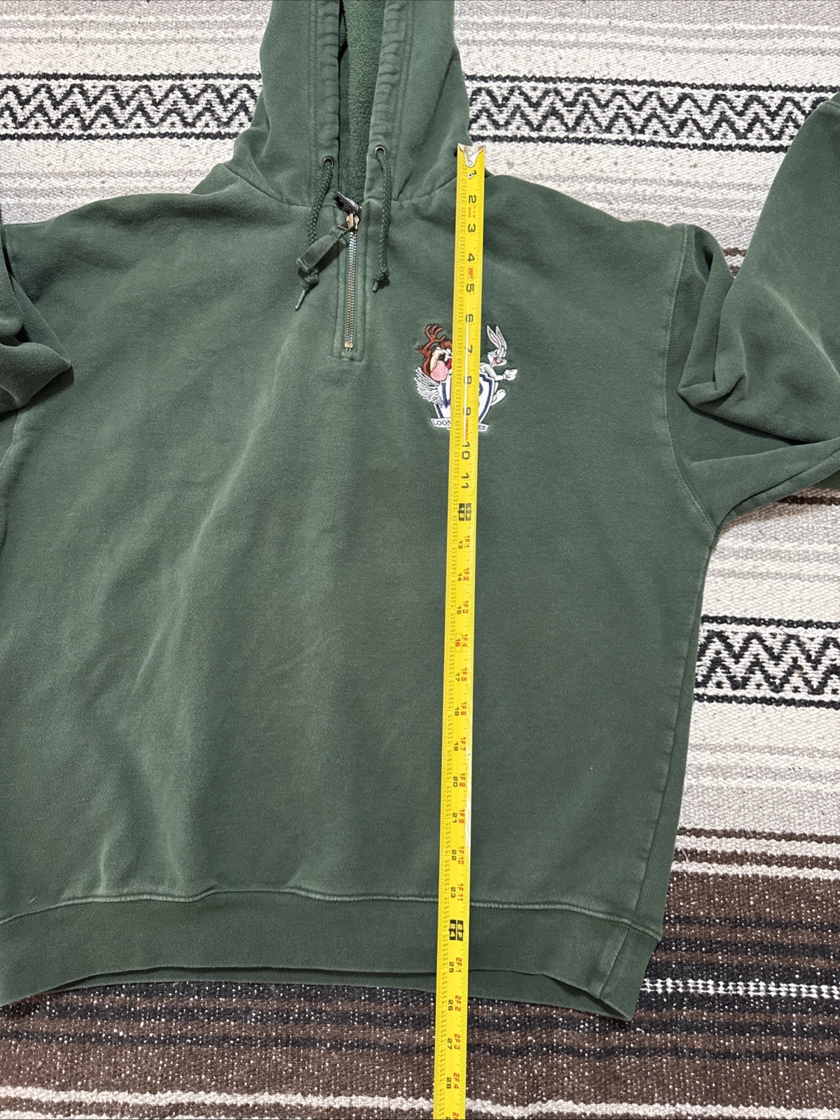 Vintage Warner Bros Studio Store Embroidered Looney Tunes Quarter Zip Hoodie M