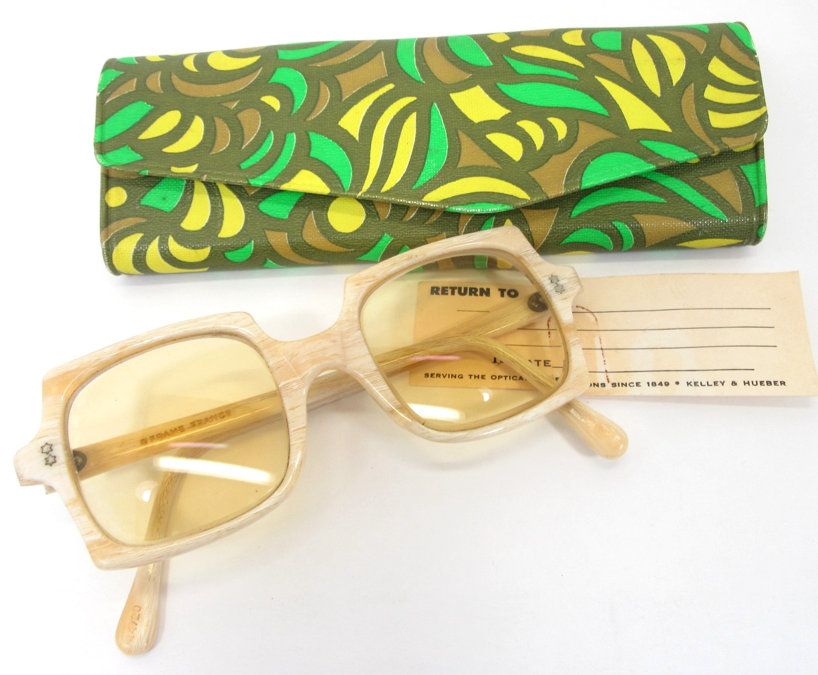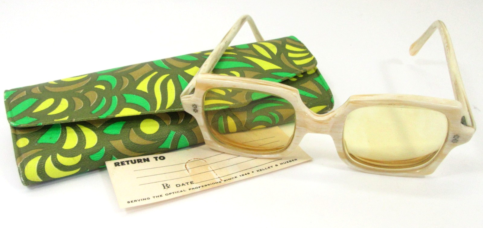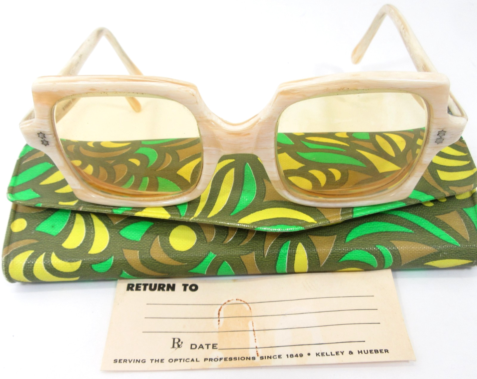 как выглядит Frame France Vintage Beige 1960s Square Lightly Tinted Eyeglasses Mod Retro фото