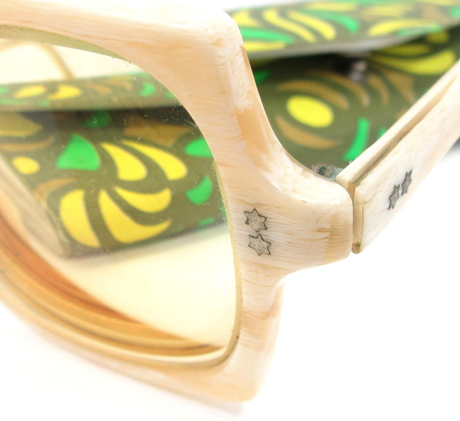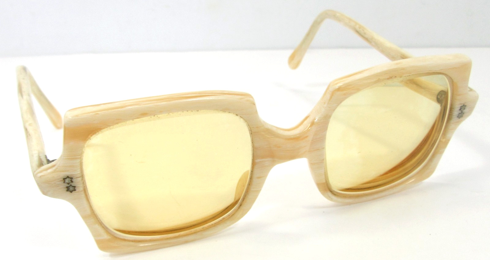 Frame France Vintage Beige 1960's Square Lightly Tinted Eyeglasses Mod Retro