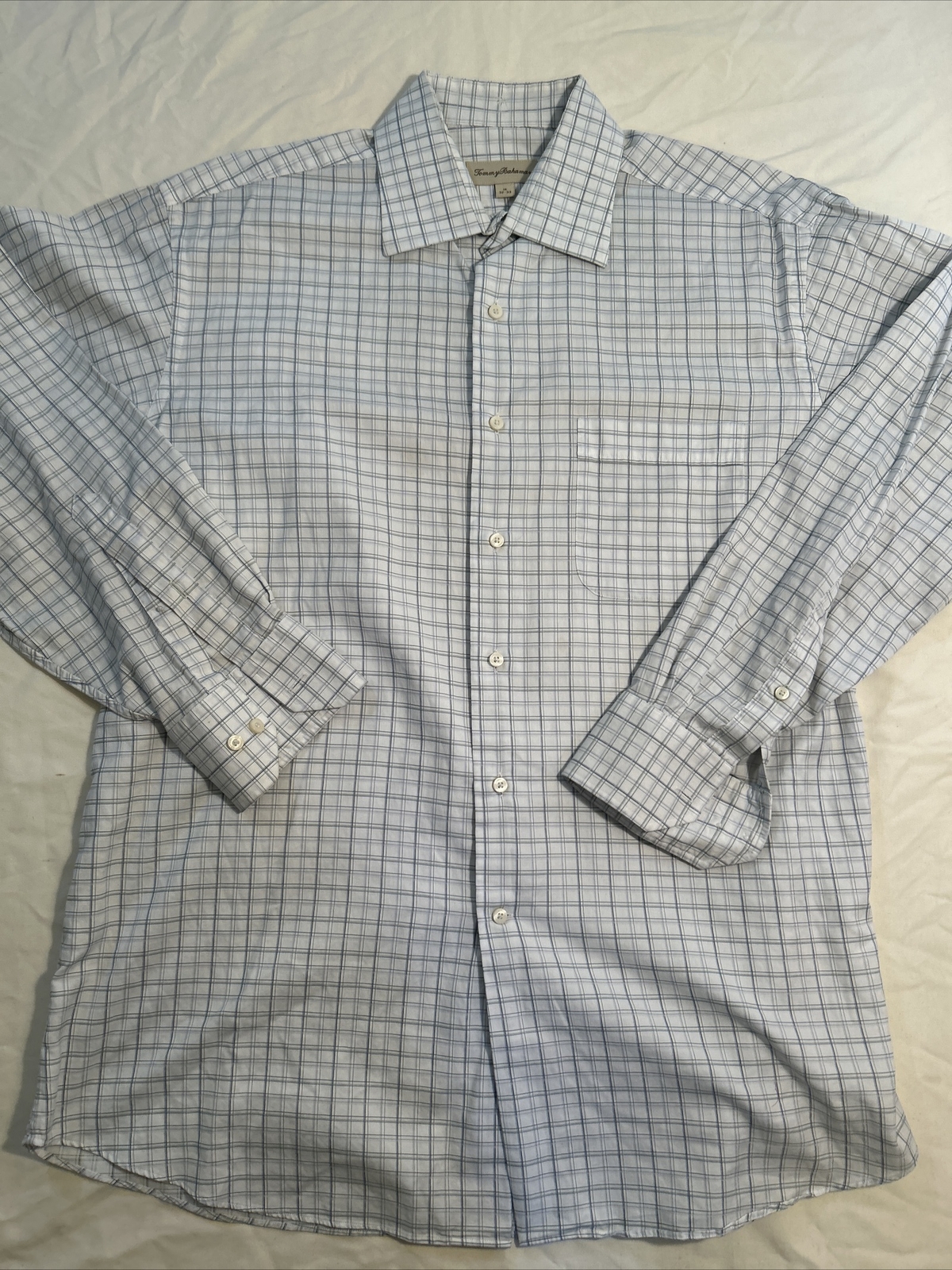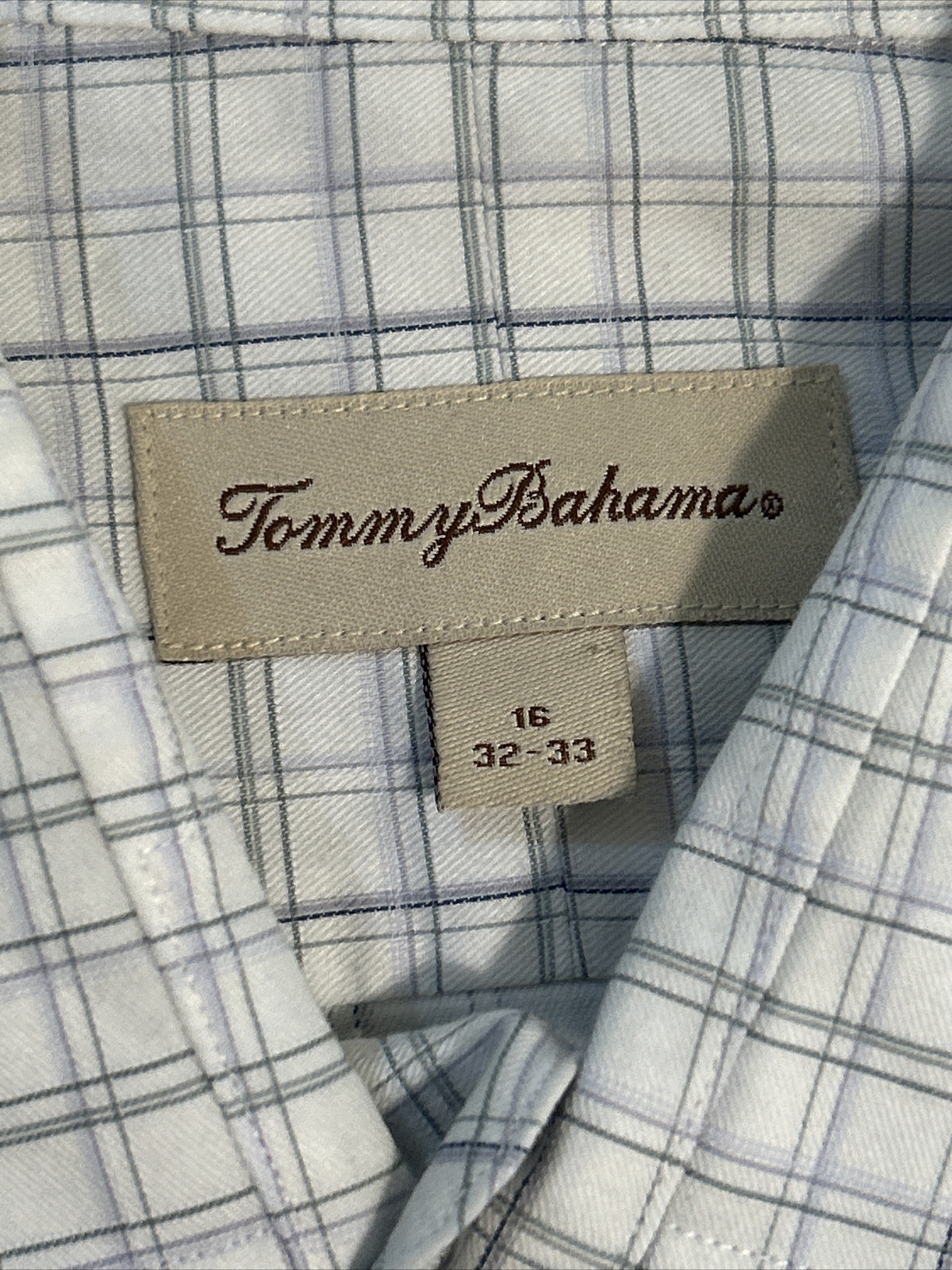 Tommy Bahama Men s Size 16 32 33 Checkered White Long Sleeve Shirt