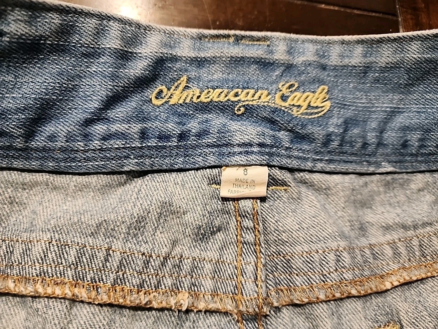 как выглядит Y2K American Eagle Micro Mini Denim Skirt Distressed Size 10 фото