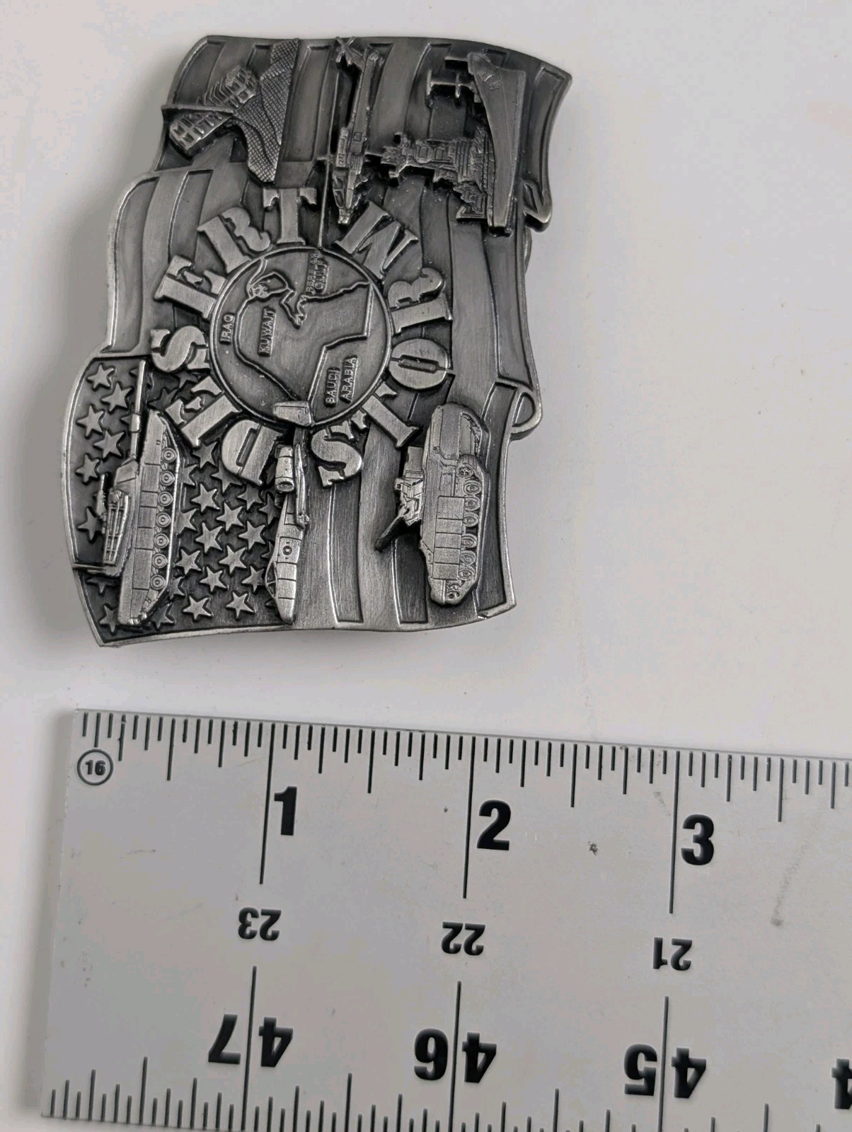 как выглядит Vintage 1991 Operation Desert Storm Belt Buckle - Siskiyou Buckle Co. - Made in фото