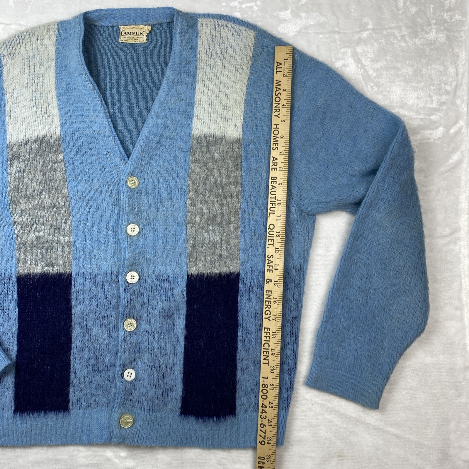 Vintage 50s- 1960s Men s Campus Orlon Mohair Cardigan Sweater L USA Cobain Style