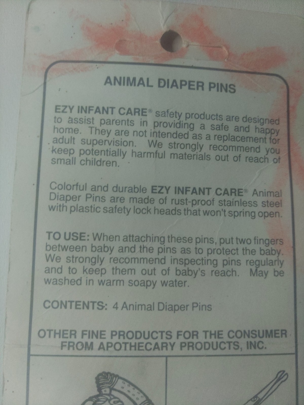 Vintage 1988 Ezy Infant Care Animal Diaper Pins Duck Animal Diaper Pins USA Made