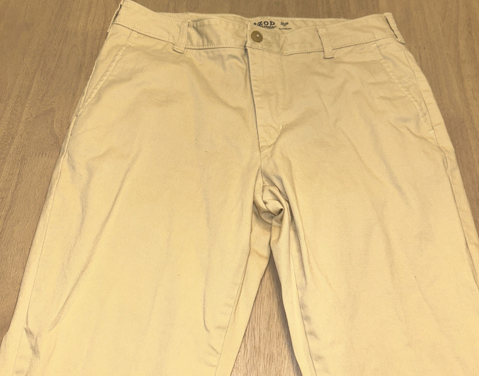 IZOD Men s 32x30 Saltwater Stretch Chino Pants, Khaki, Flat Front, Slim Fit