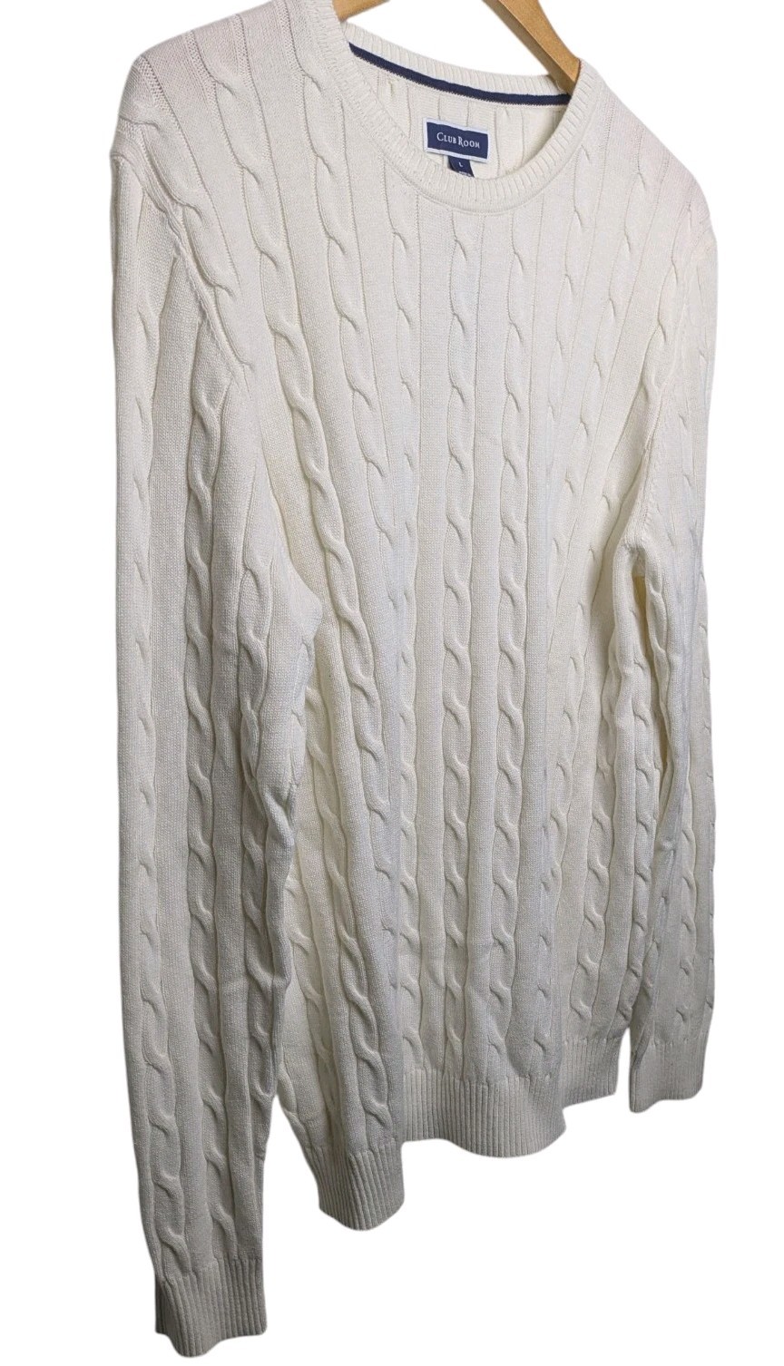 как выглядит Club Room Mens Cable Knit Sweater Large NWT New Winter Ivory фото