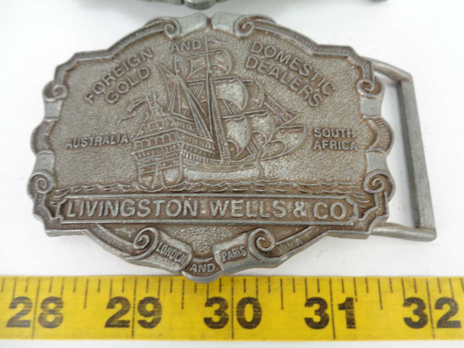 как выглядит Lot of 2 Livingston Wells Co Belt Buckle Foreign Gold Domestic Dealers Ship фото
