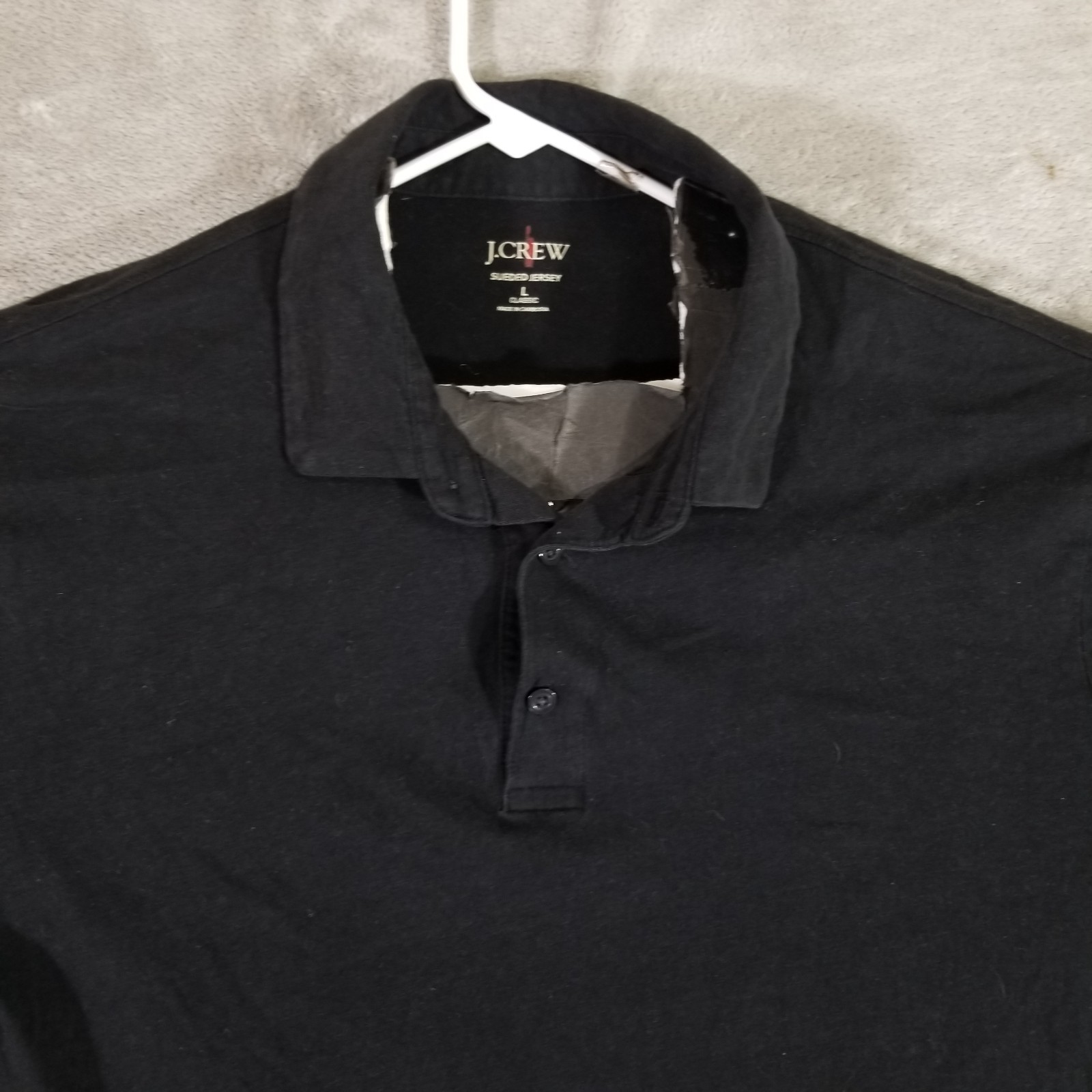 как выглядит J Crew Oarsman Polo Shirt Mens Large Black Sueded Jersey Short Sleeve Casual фото