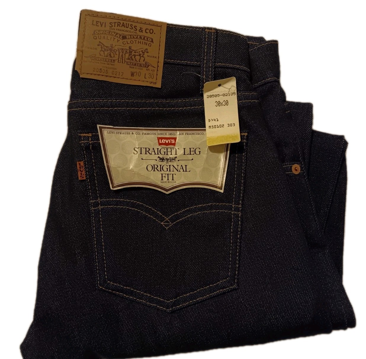 как выглядит NWT Vintage 70s 80s Levis 505 Jeans USA Rigid Unwashed Denim Orange Tab 30 X 30 фото
