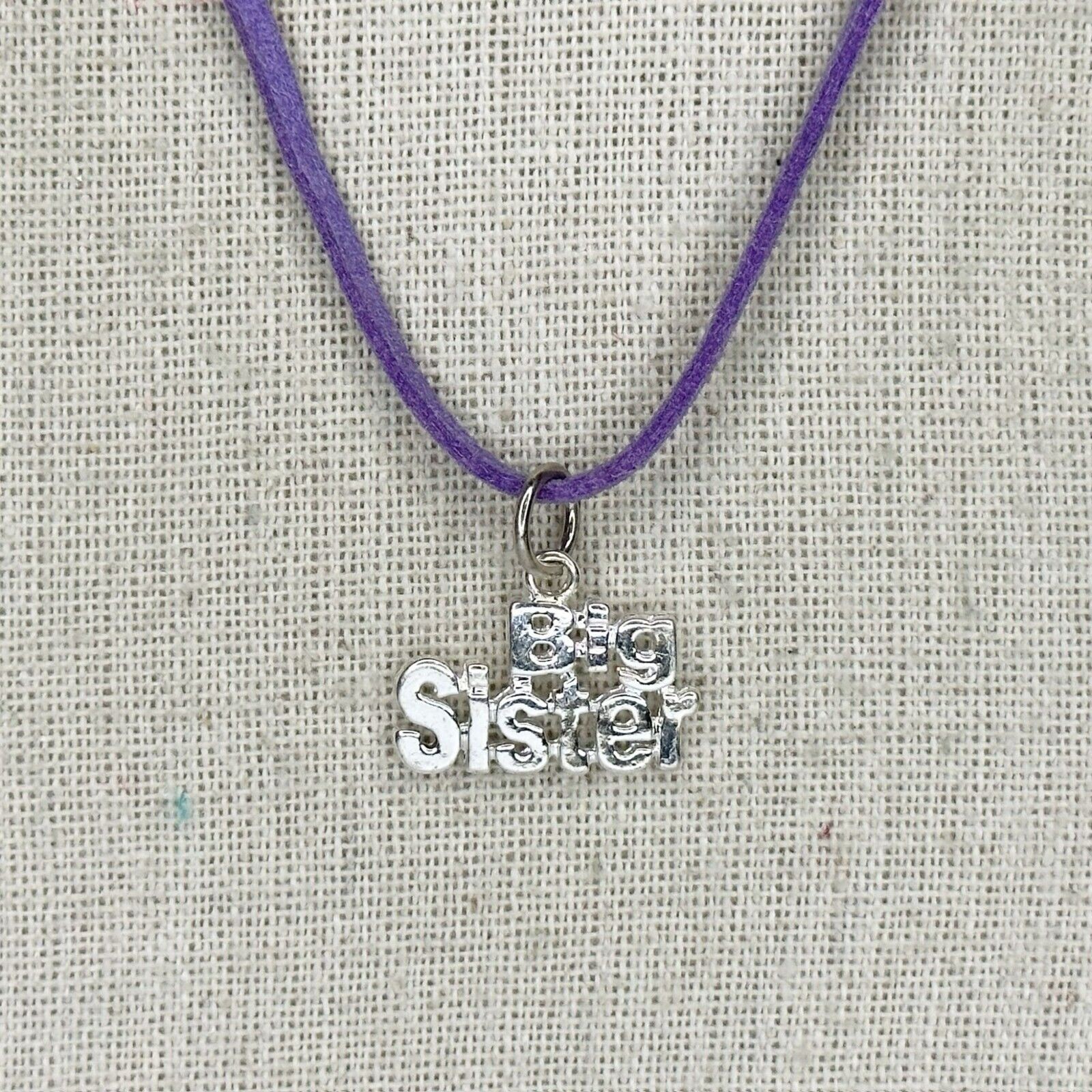 Big Sister Silver Tone Pendant on Purple Cord Necklace