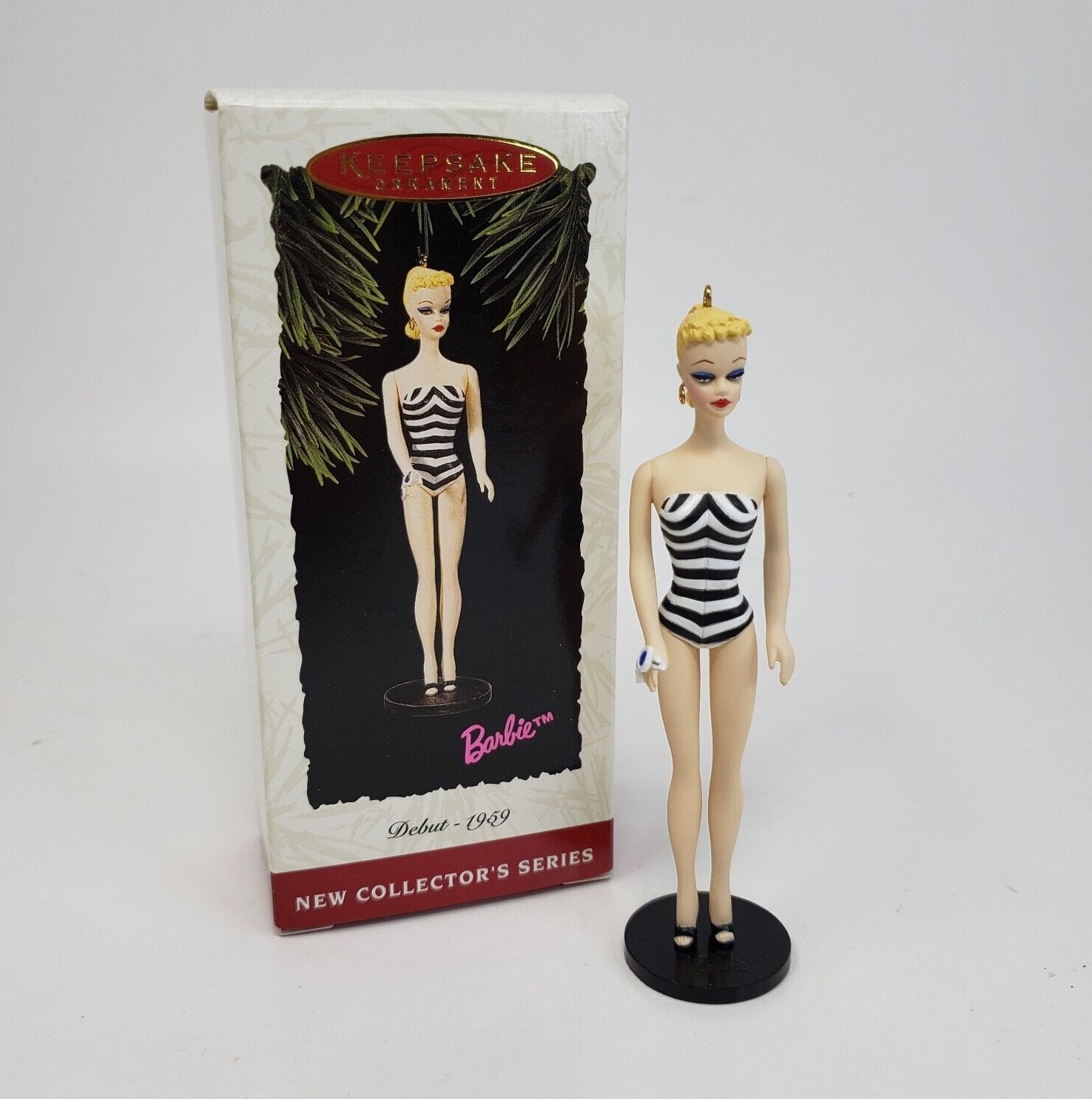 как выглядит VINTAGE 1994 HALLMARK MATTEL DEBUT - 1959 BARBIE KEEPSAKE CHRISTMAS ORNAMENT BOX фото