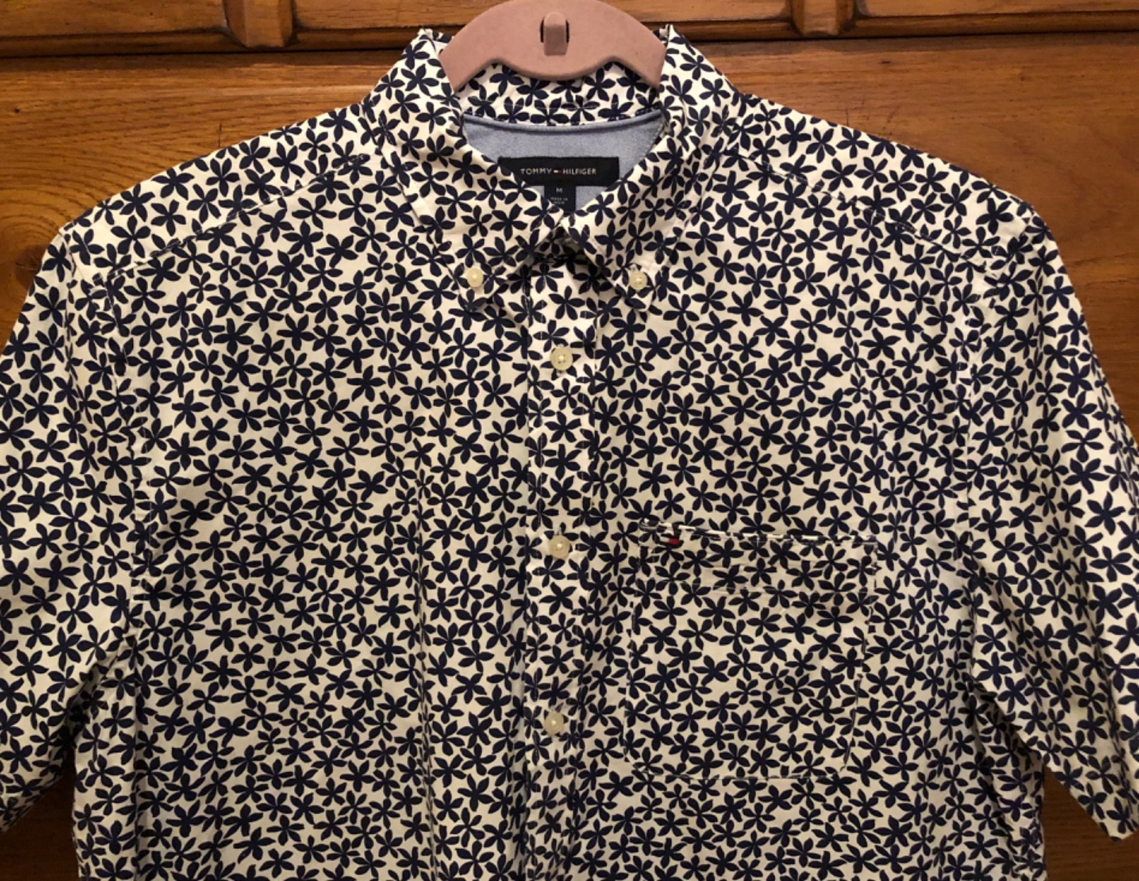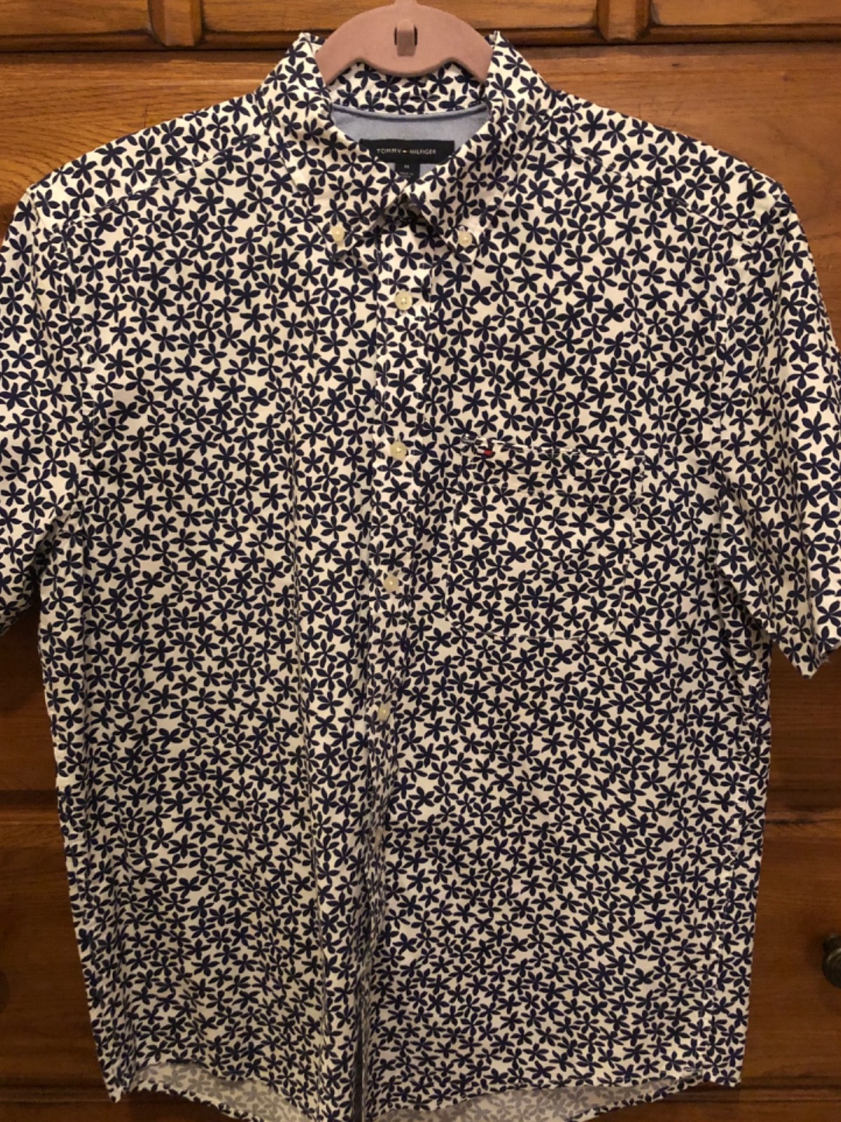 как выглядит TOMMY HILFIGER MENS CASUAL CLASSIC FIT BUTTON DOWN SHIRT BLUE FLORAL MEDIUM фото