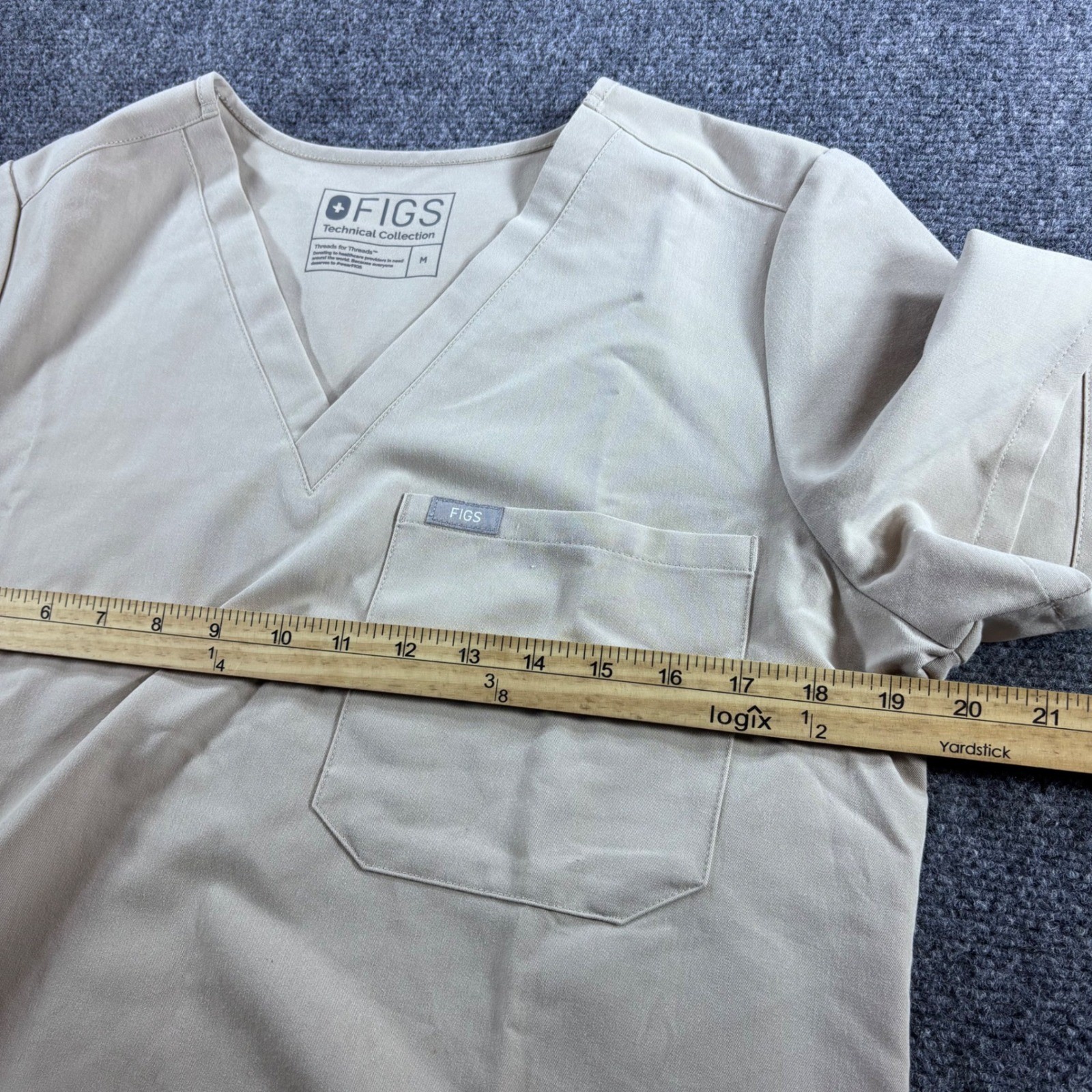FIGS Scrub Top Women Medium Tan V-Neck Short Sleeve FW1000 Technical Collection