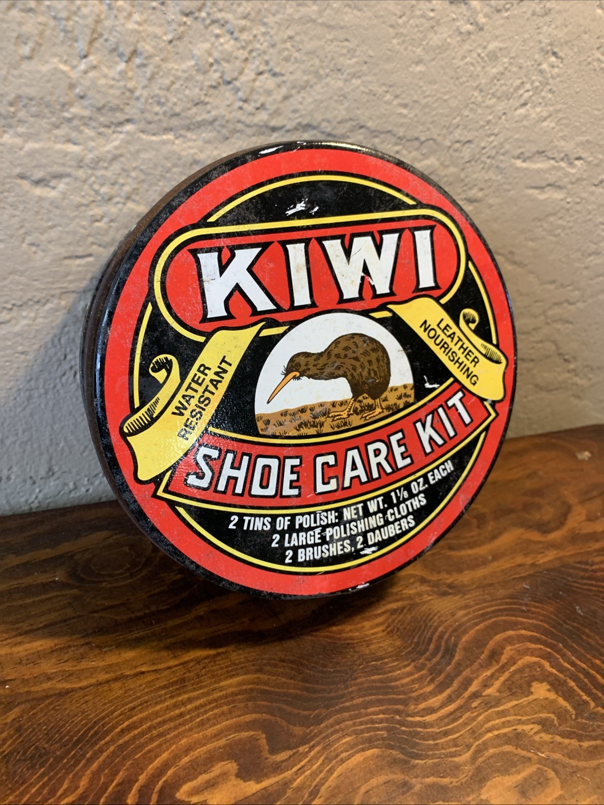 • Vintage KIWI Shoe Care Tin and Brushes Shoe Care NO polish
