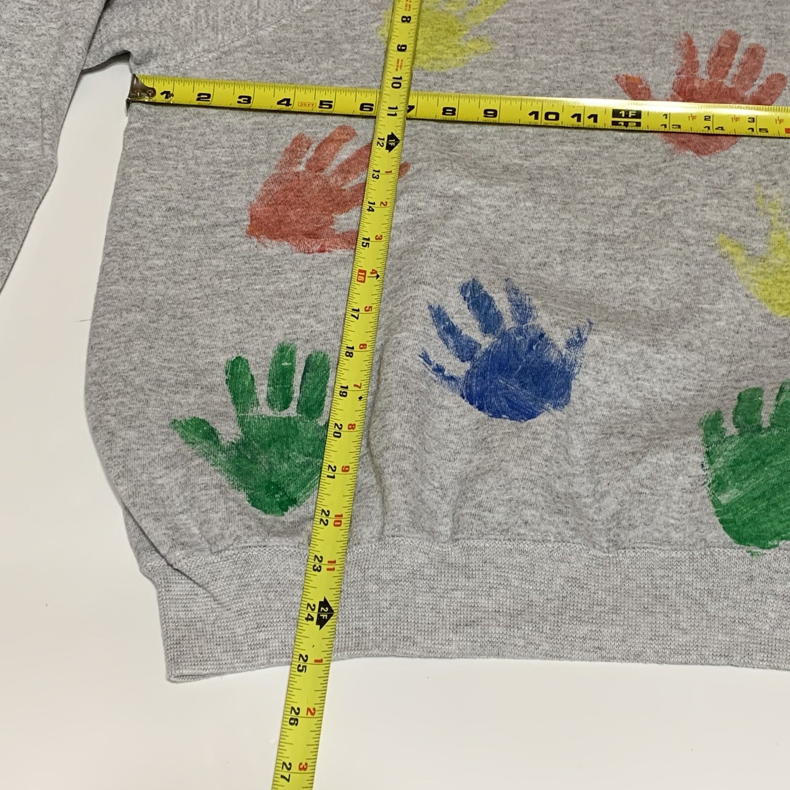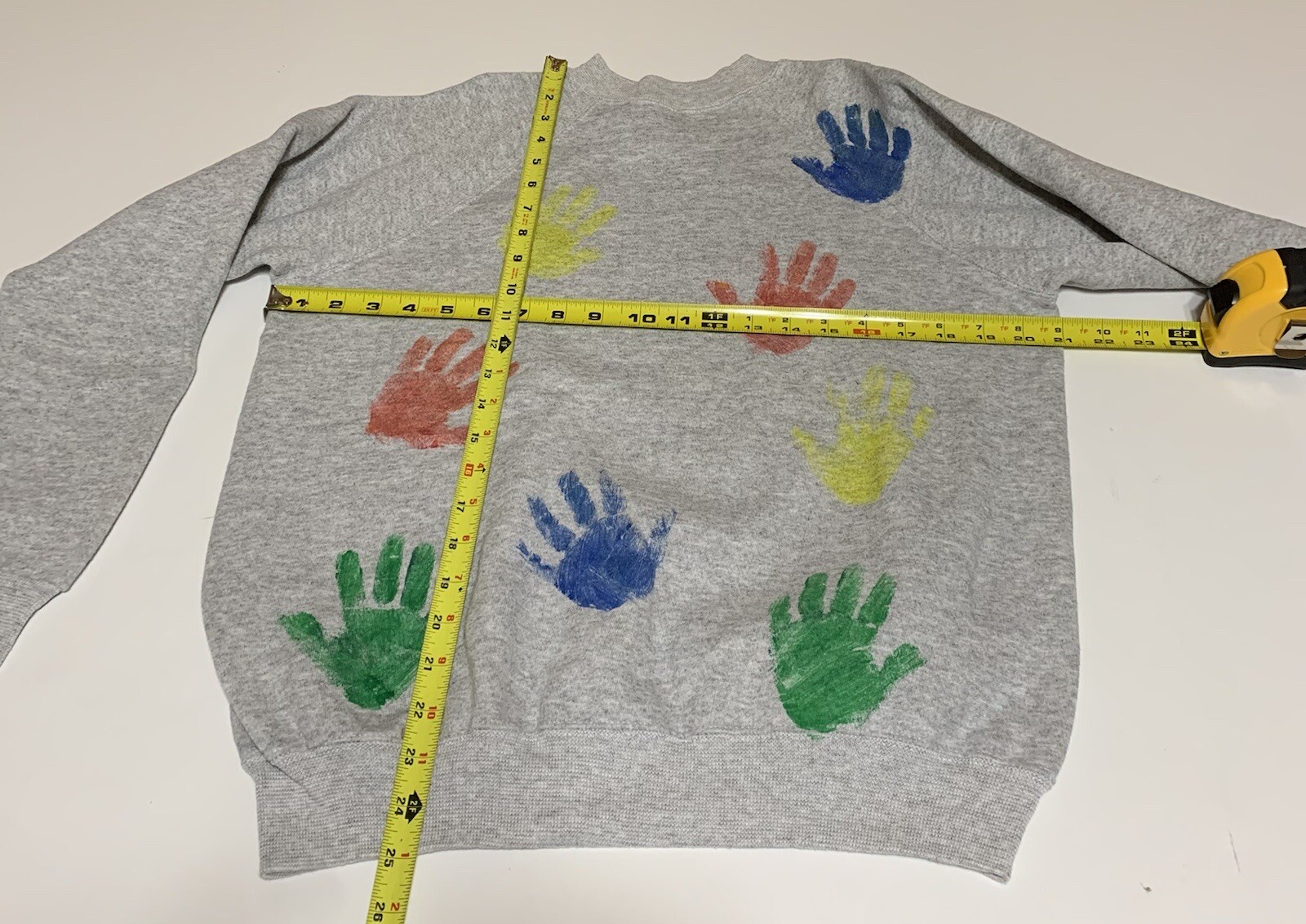 как выглядит Vintage Hanes Her Way Women s M Raglan Crew Neck Sweatshirt Kids Hand Prints фото