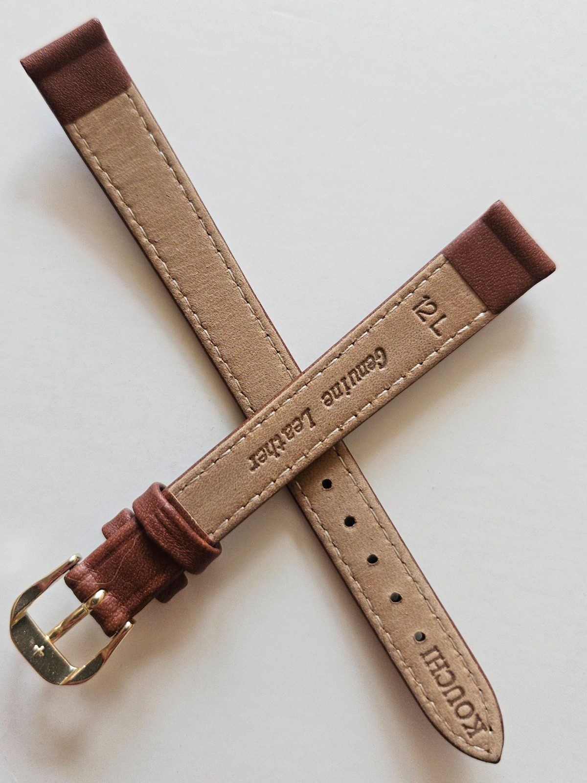 как выглядит 12mm / Long - Brown Classic Style Leather Watch Band - Gold Buckle / w Pins фото