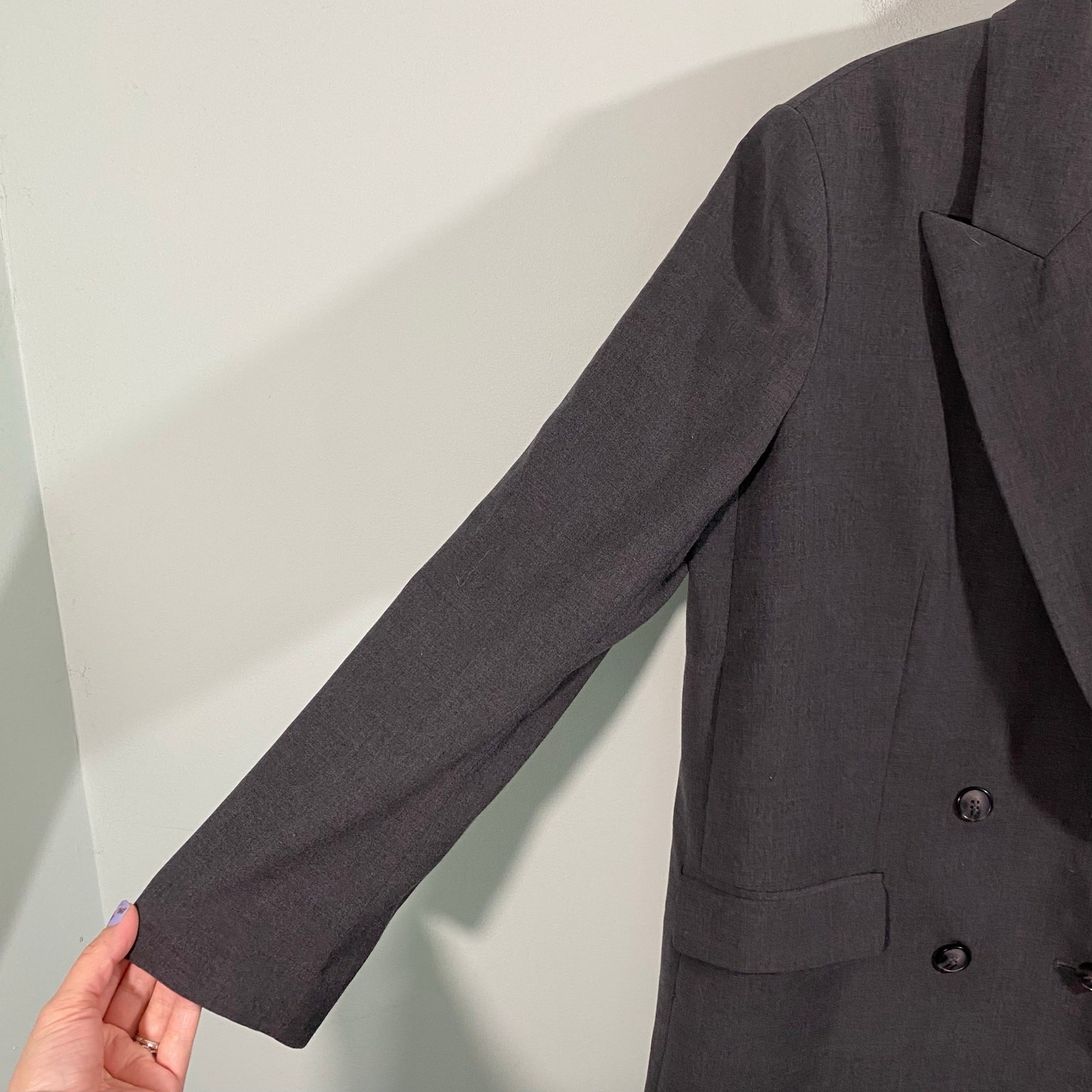 как выглядит H M Women Charcoal Grey Oversized Double Breasted Blazer Size M фото