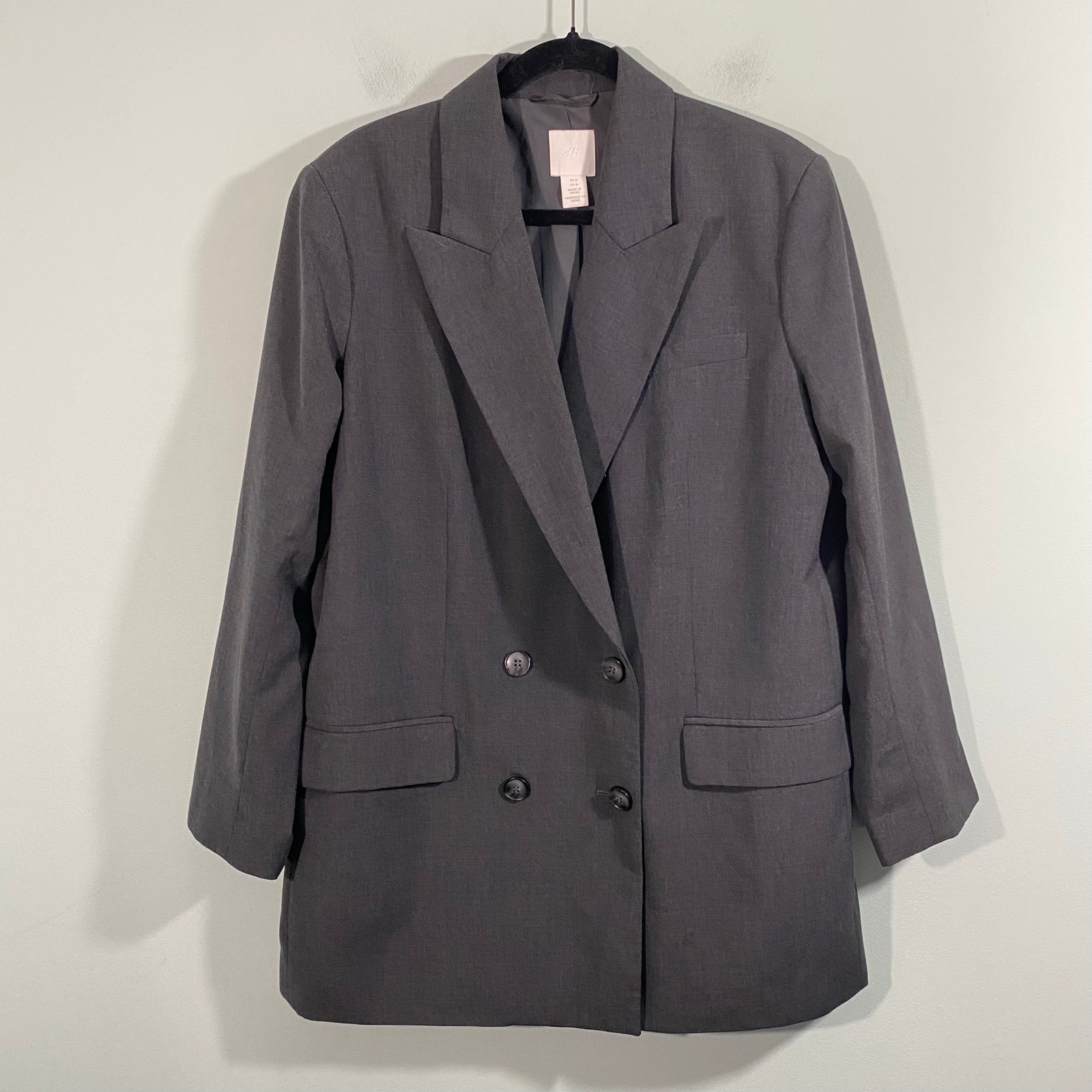 H M Women Charcoal Grey Oversized Double Breasted Blazer Size M