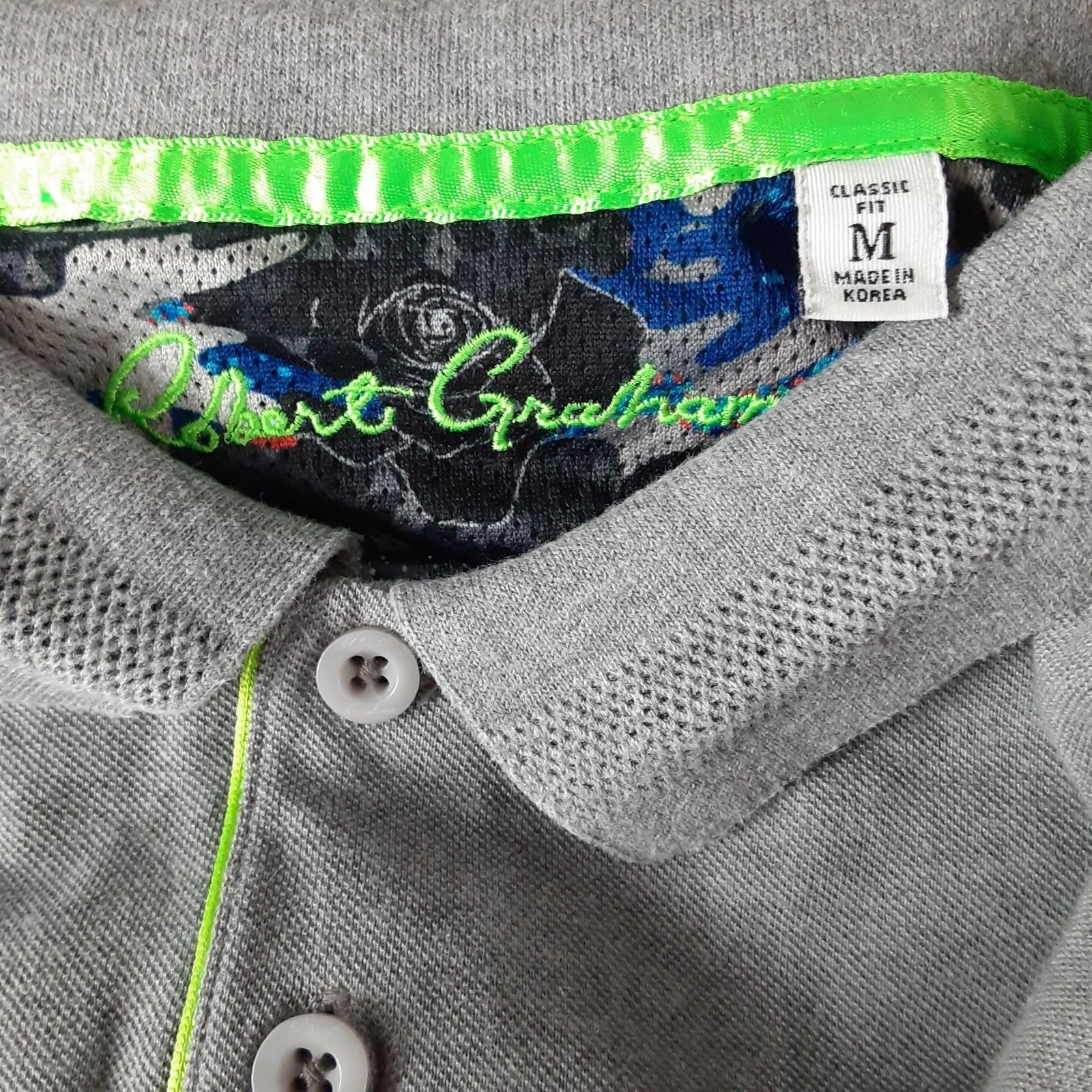 как выглядит Robert Graham Polo Shirt Men s Medium Grey Short Sleeve Cotton Blend Classic Fit фото