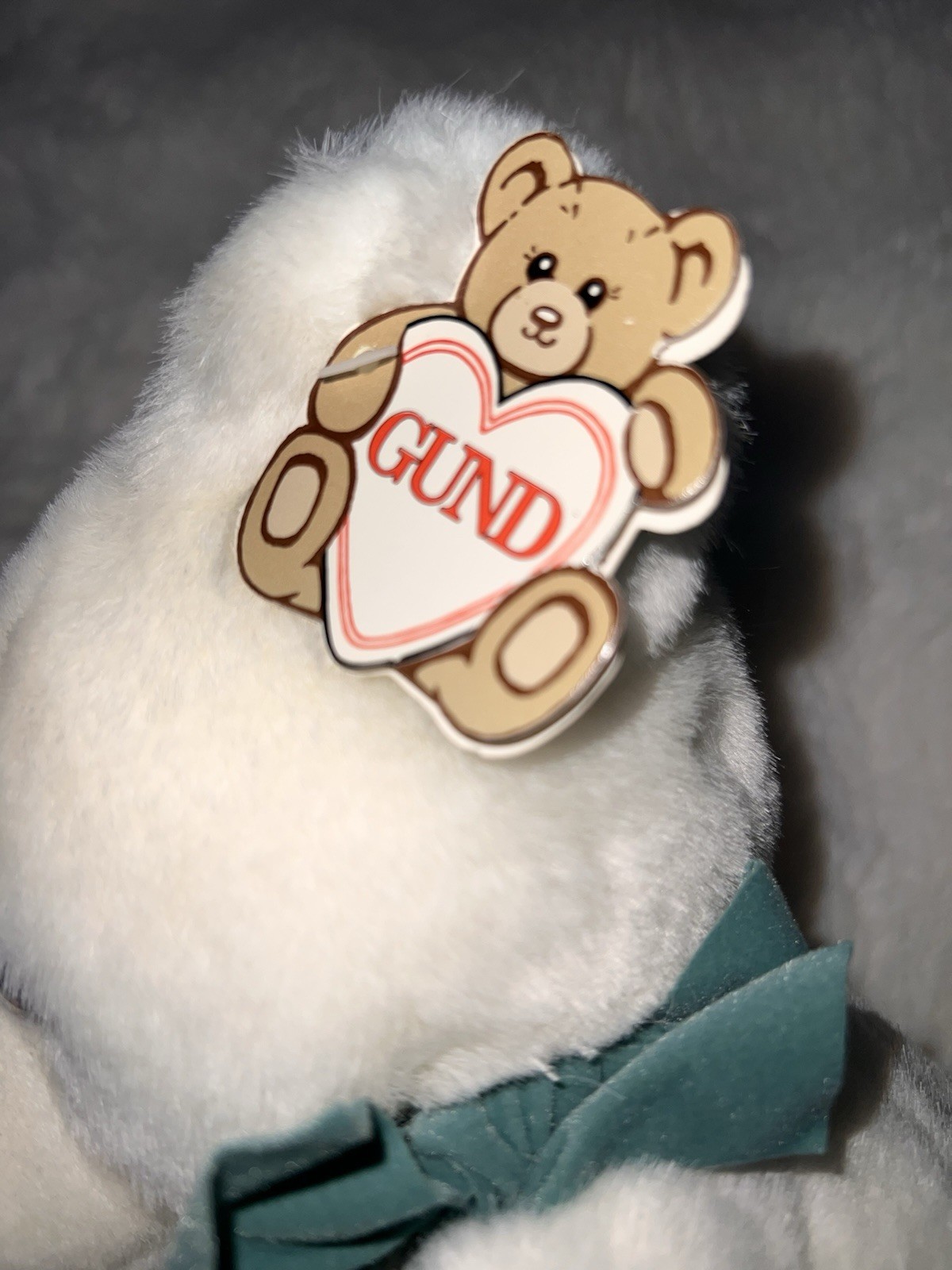 как выглядит Vintage Gund 1983 Green Bow Tender Teddy Bear White 8 Plush Stuffed Animal фото