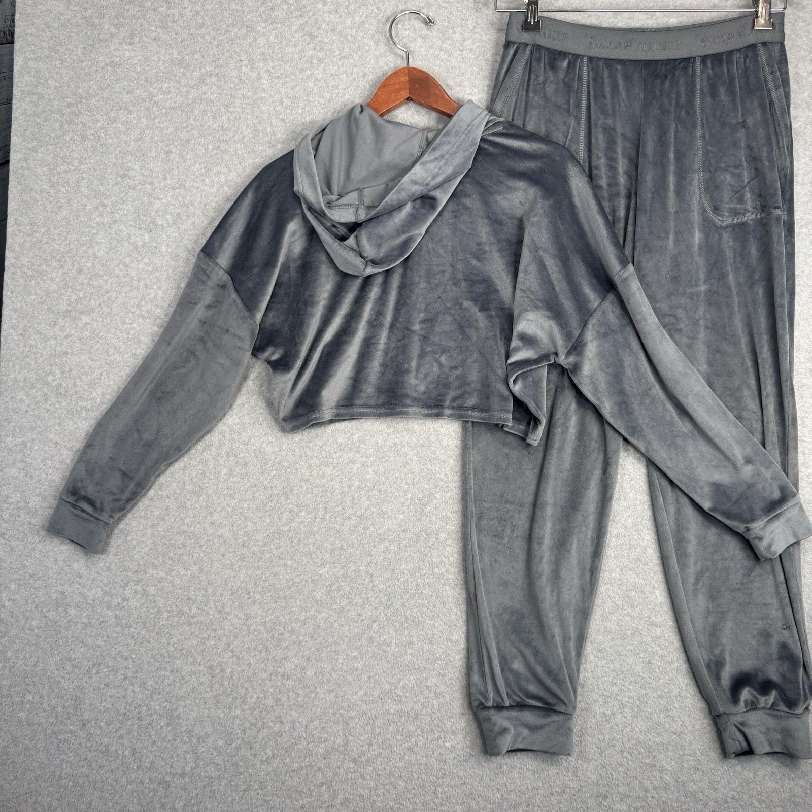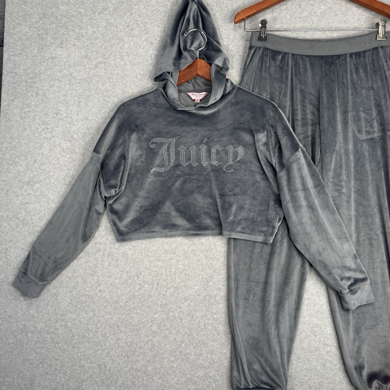 как выглядит Juicy Couture Velour Tracksuit Set Gray Rhinestone Small Y2K Lounge Butt Logo фото