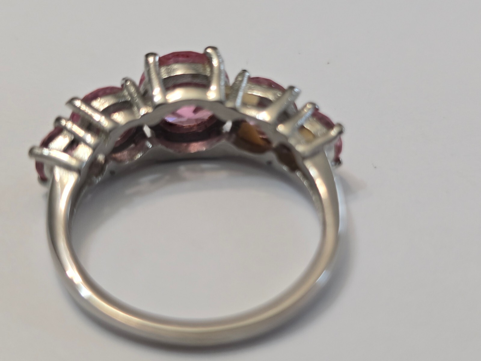Silver Plated Pink Cubic Zirconia CZ 5 Stone Ring Sz 9
