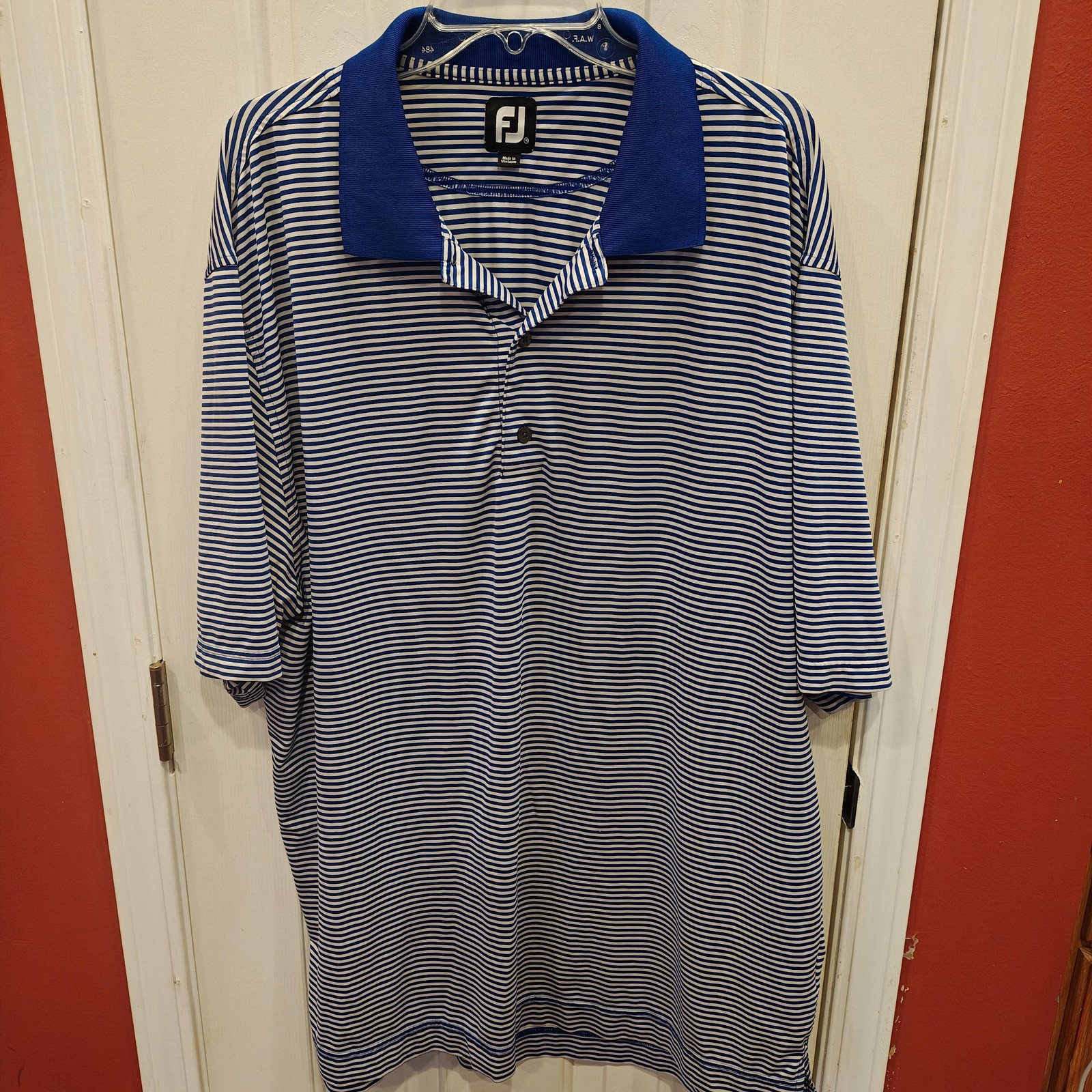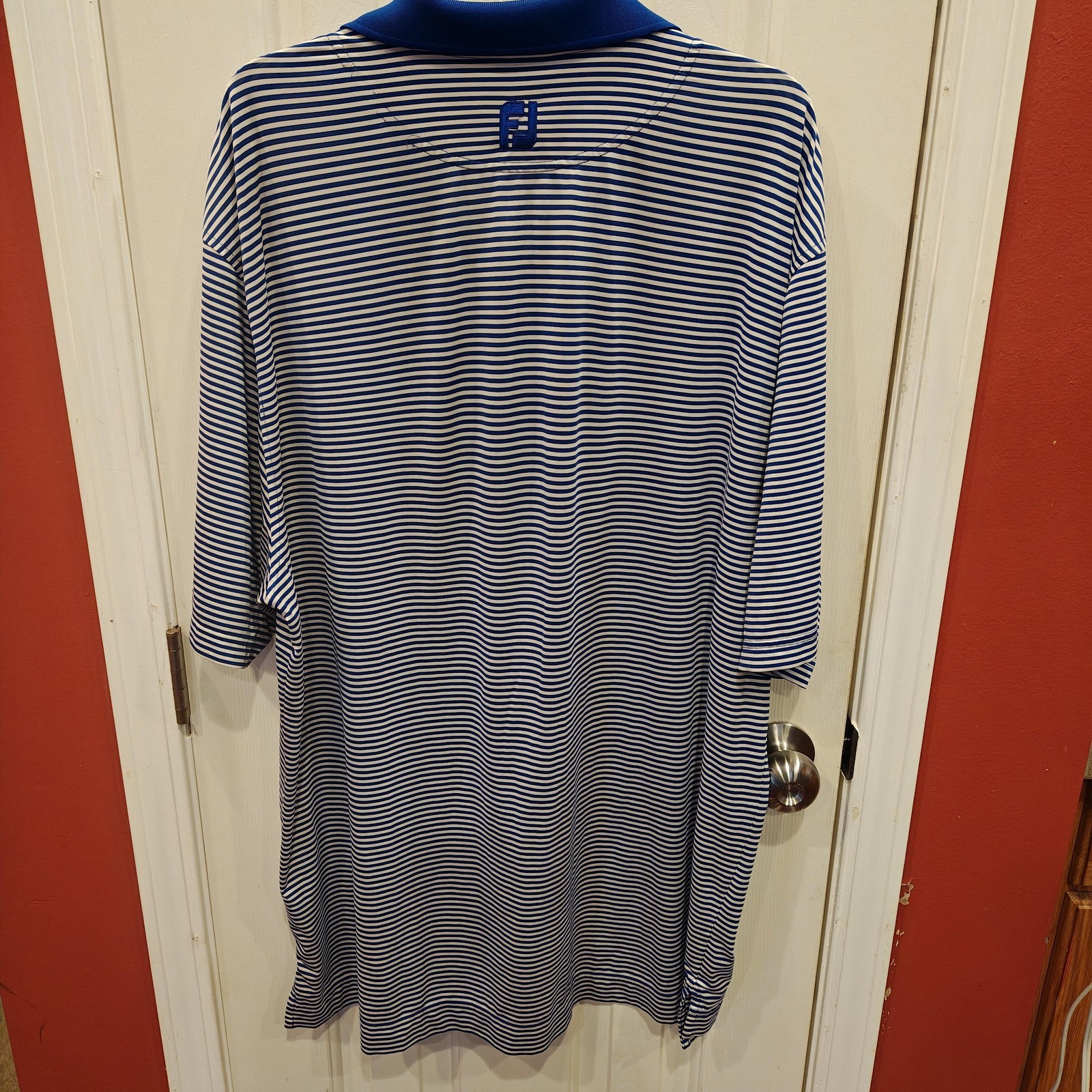 FootJoy Polo Shirt Mens 2XL Blue White Striped Golf Performance Short Sleeve